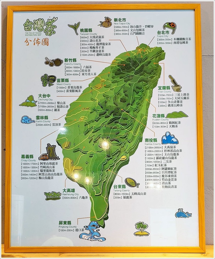▼牆上還掛有台灣茶的分布圖,因為天候、地形關係,台灣各地都有生產不同的好茶,喜愛喝茶的朋友也可以細細品味一番!