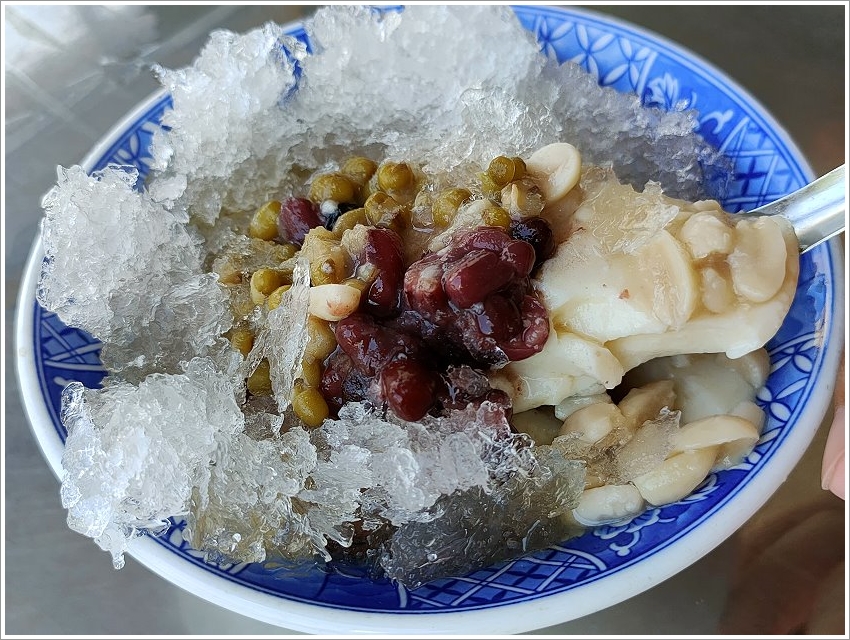 ▼我們點的是綜合豆花冰,除了豆花之外,裡頭還有紅豆、綠豆、花生、粉圓等配料,一整碗好料滿滿,上頭再加上剉冰,吃起來清涼又消暑!每一種配料都是店家自行熬煮,吃得到原本食材的香氣,軟而不爛,加上配料本身就有甜度,所以大概半糖就很好吃了~~