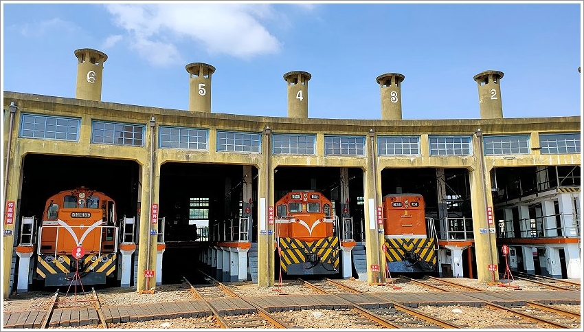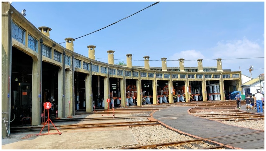 ▼一旁圓弧狀的車庫就是火車休息的地方,向外擴展的軌道猶如一面扇子,所以才稱為扇形車庫;因為火車頭經過長時間的奔馳才進入車庫休息、保養、維修,所以扇形車庫也有「火車頭旅館」之稱!