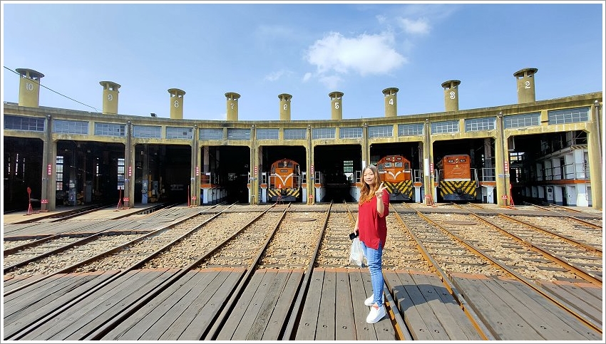 ▼可惜車庫的火車頭沒有停滿,不過拍照起來也很有FU就是!