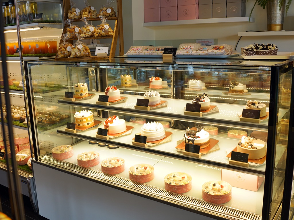 店內環境以粉白色系居重,呈現清新優雅的氣氛,一邊是吐司麵包區、一邊是冷藏蛋糕甜點,中間則是常溫點心,雖然整體空間不大,但擺放的井然有序,方便顧客挑選~