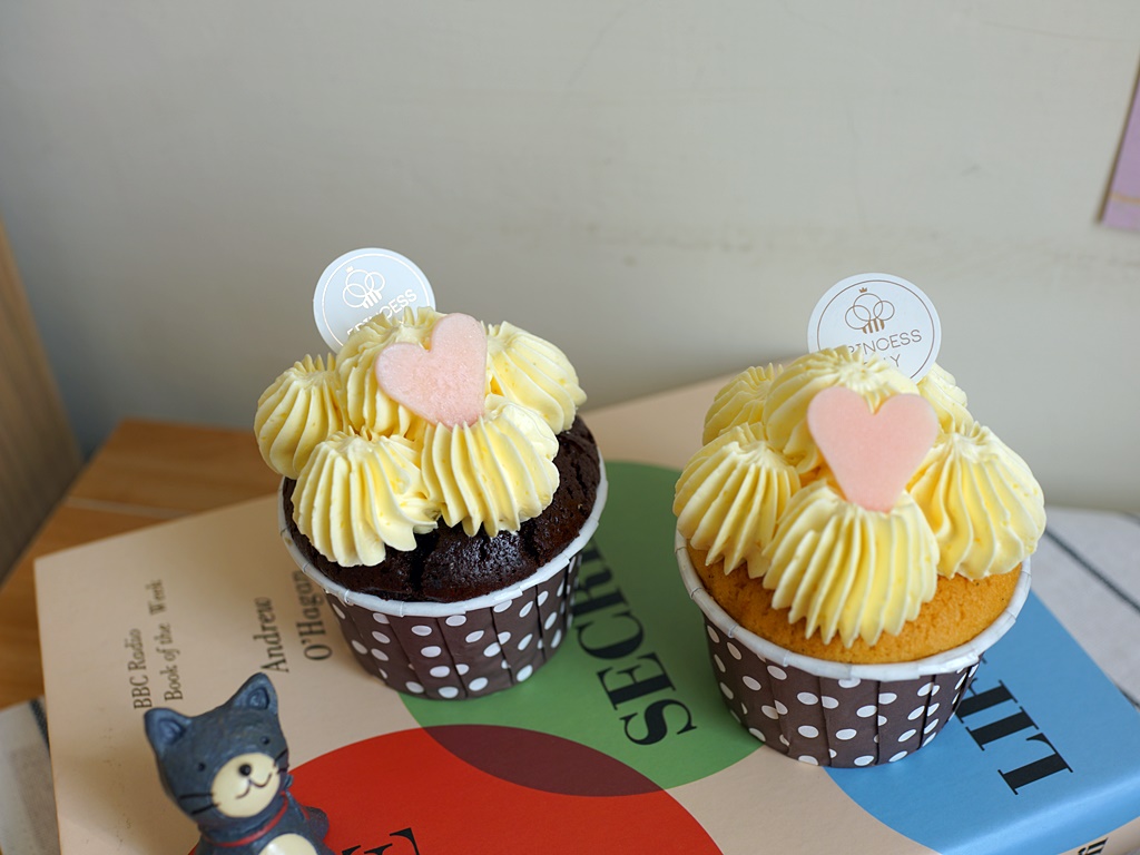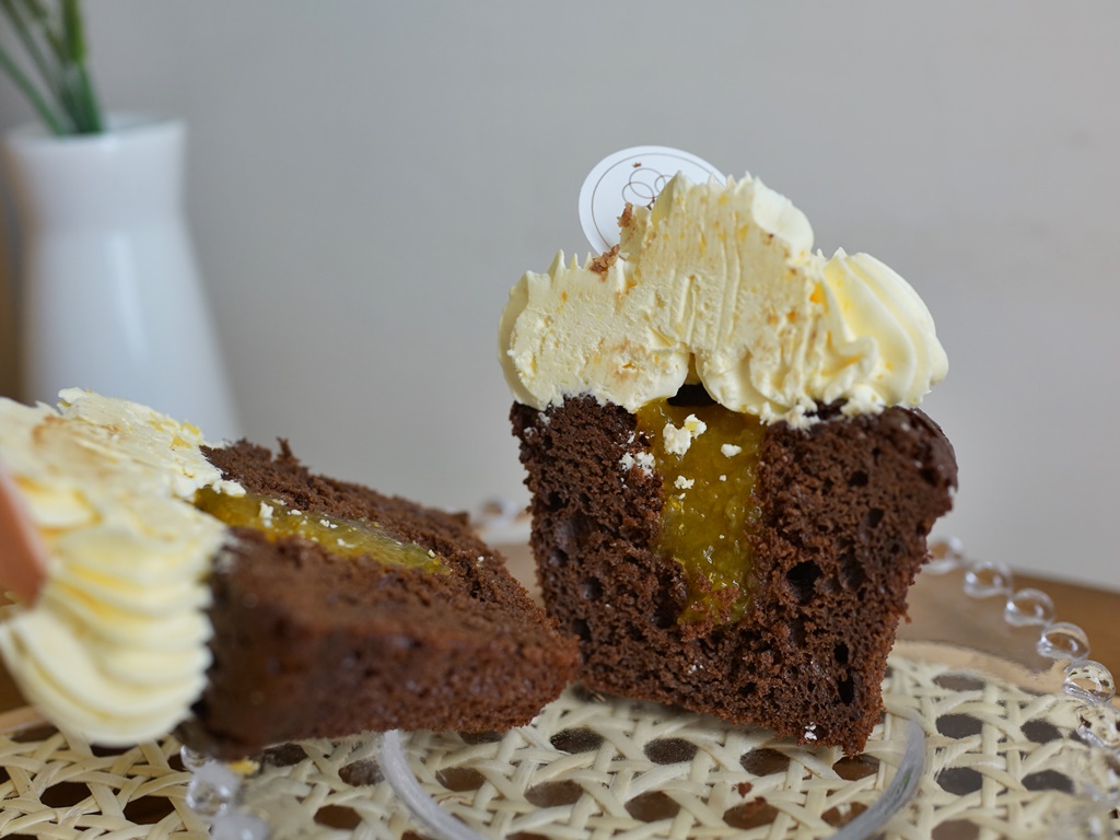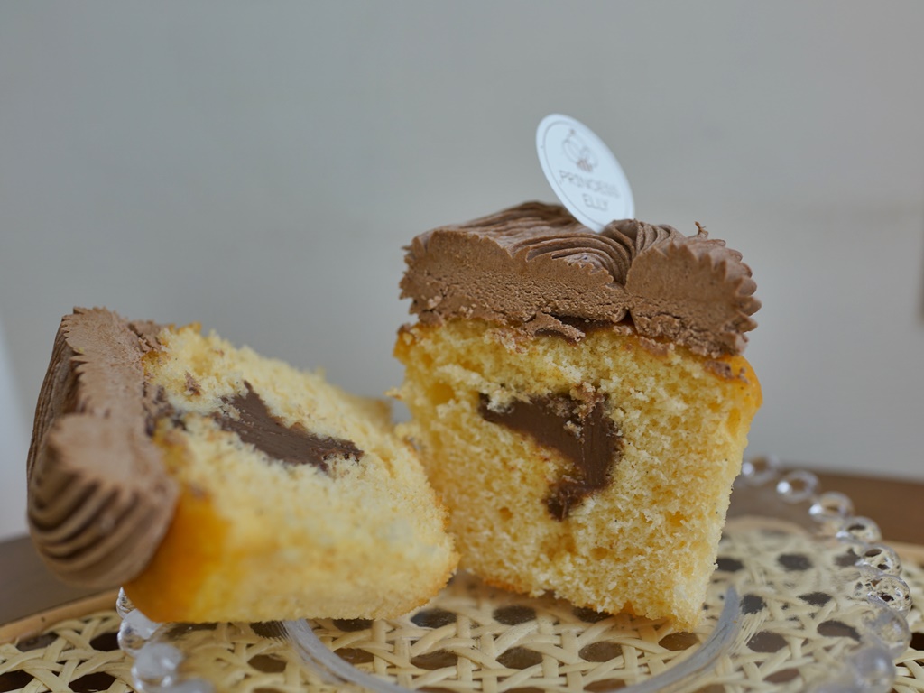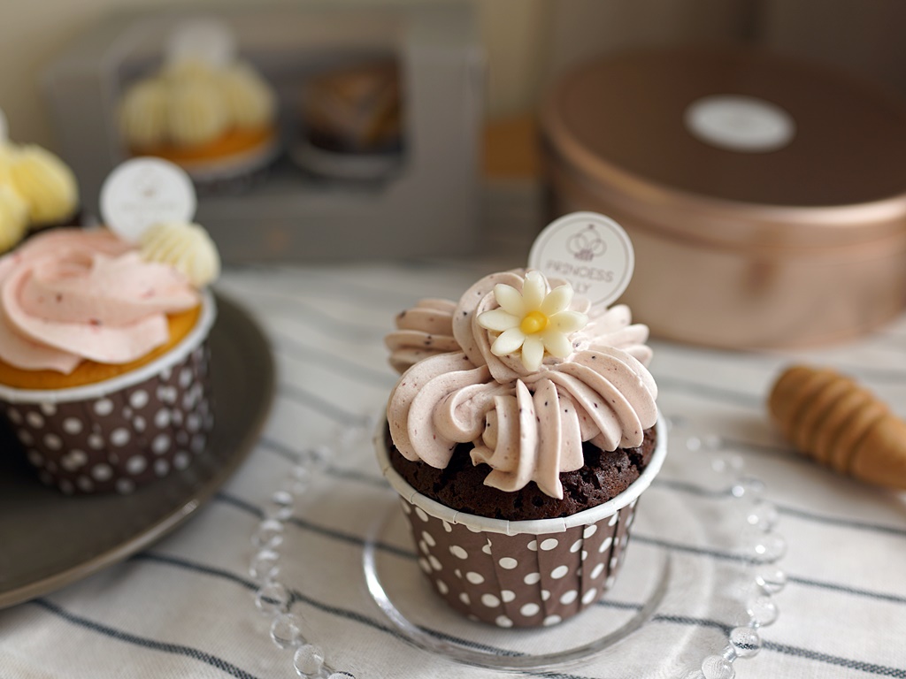 我平常幾乎不吃巧克力的,但他們的巧克力杯子蛋糕超好吃,巧克力鮮奶油香濃不甜膩、非常滑順,不管是跟香草蛋糕或巧克力蛋糕都很對味,我吃一口就直呼也太好吃了吧,沒意外成為我心中的第一名口味
