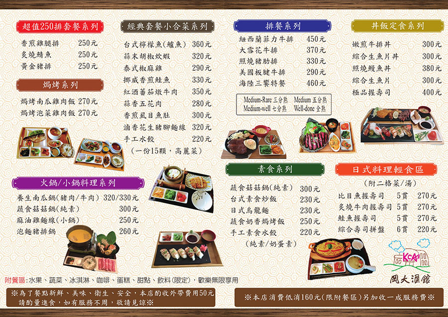 台式餐點、日系餐點、火鍋系列、素食餐點都有