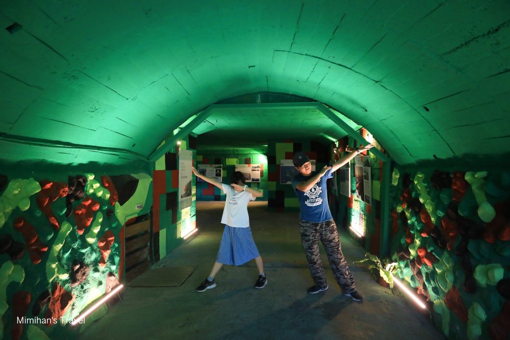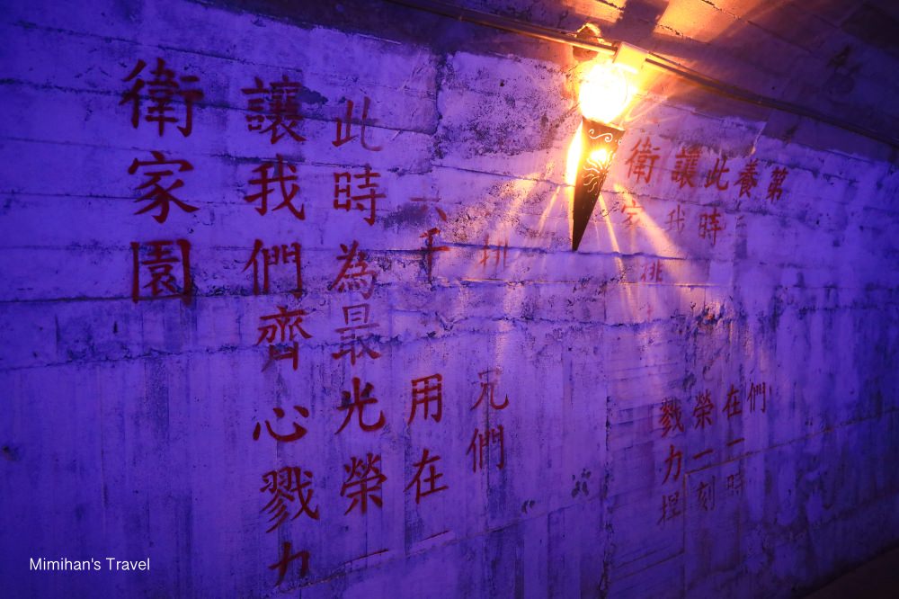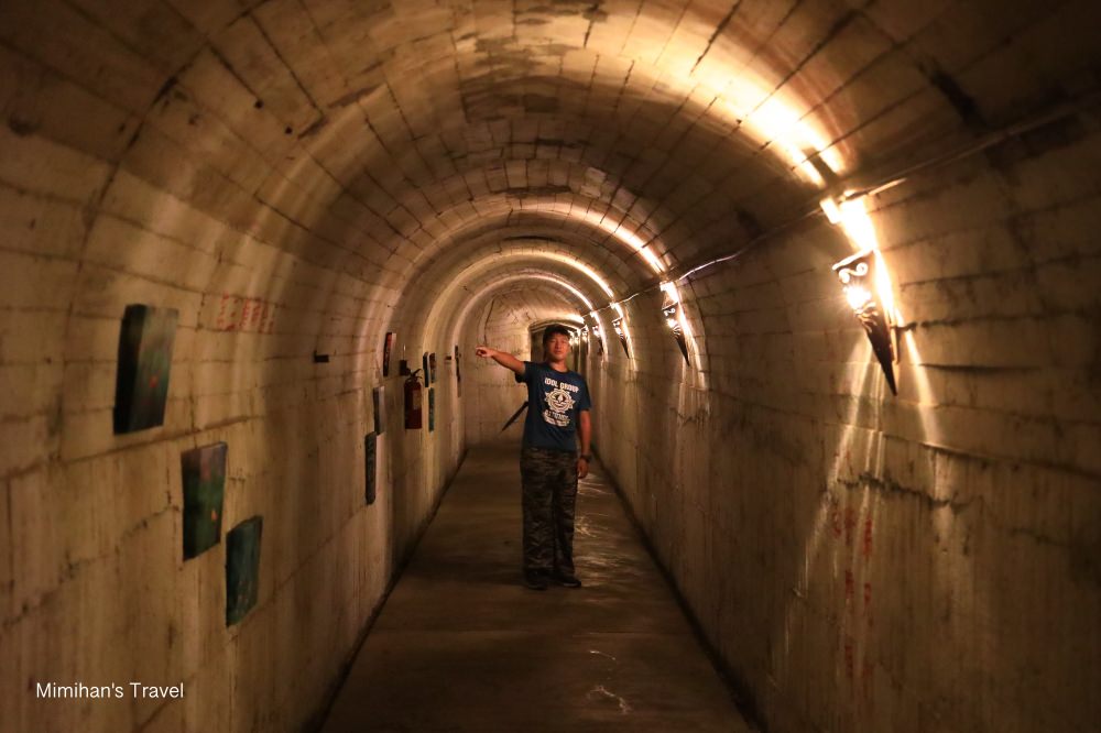 整條坑道說長不長,都不停留的話大約5分鐘就能走到最後的砲陣地觀景台。沿途還蠻狹窄的,而且空氣有點沈悶,感覺當時的軍人要在這裡的環境裡生活真的相當辛苦啊!