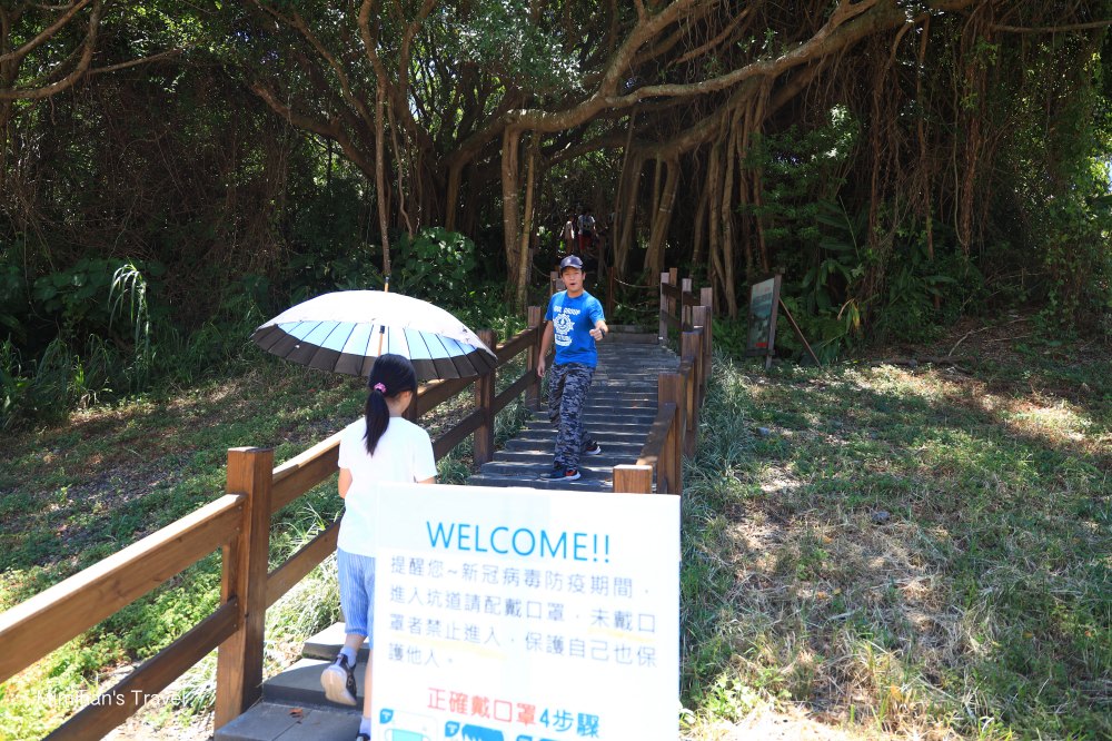 因為四八高地戰備坑道的入口藏在樹叢裡超隱密,從外面完全看不到,幸好現場有設置簡易的指示牌照著走就對囉!也是啦!軍事要地怎麼可以隨隨便便就讓人家看到呢哈哈~