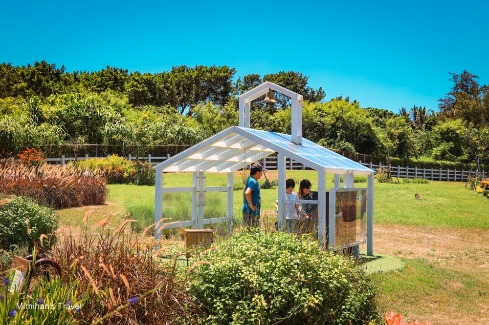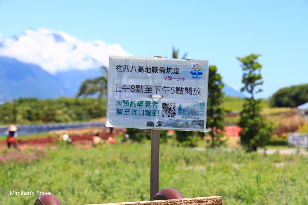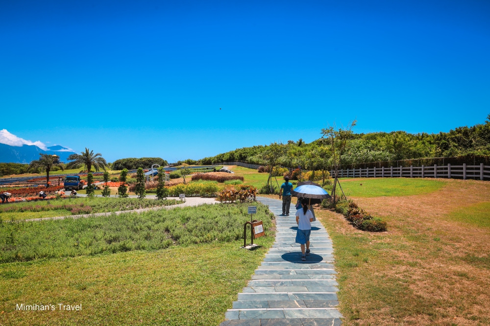 要前往四八戰備坑道前,可以先逛逛曼波園區的花園,風景也是很優美。不過美歸美,暑假花蓮真的霹靂無敵熱,戶外實在沒辦法待太久,我們就匆匆繞了一圈就趕緊往坑道前進。
