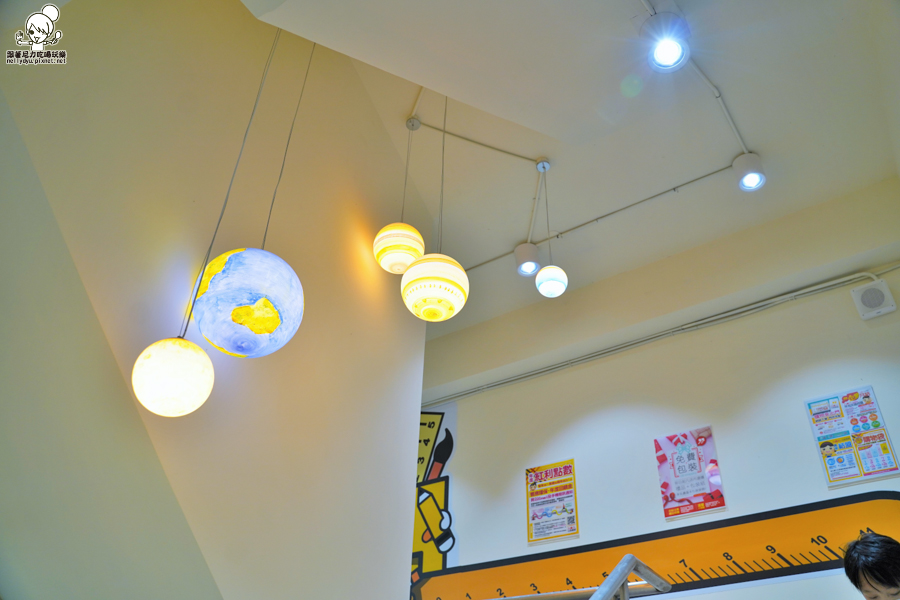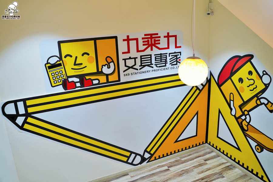 裝潢別於以往的九乘九風格,更添加許多可愛活潑的文具公仔塗鴉,很活潑、更貼近人群