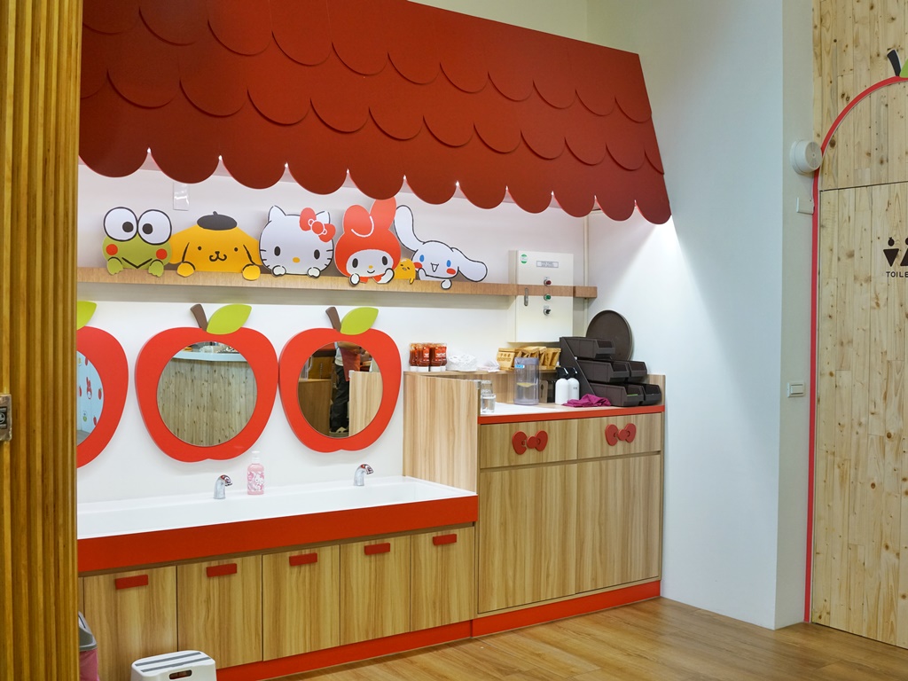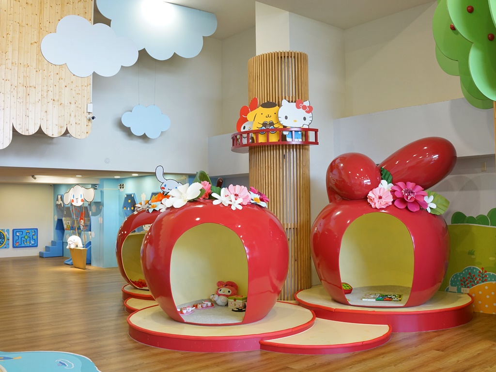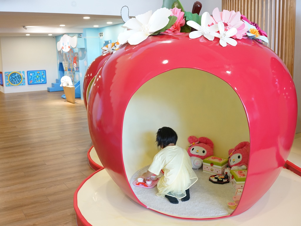 超夢幻的【美樂蒂蘋果樂園】,共有三顆巨大蘋果,裡面放了積木、娃娃和扮家家酒玩具,獨立空間讓孩子享有在秘密基地遊玩的氛圍~
