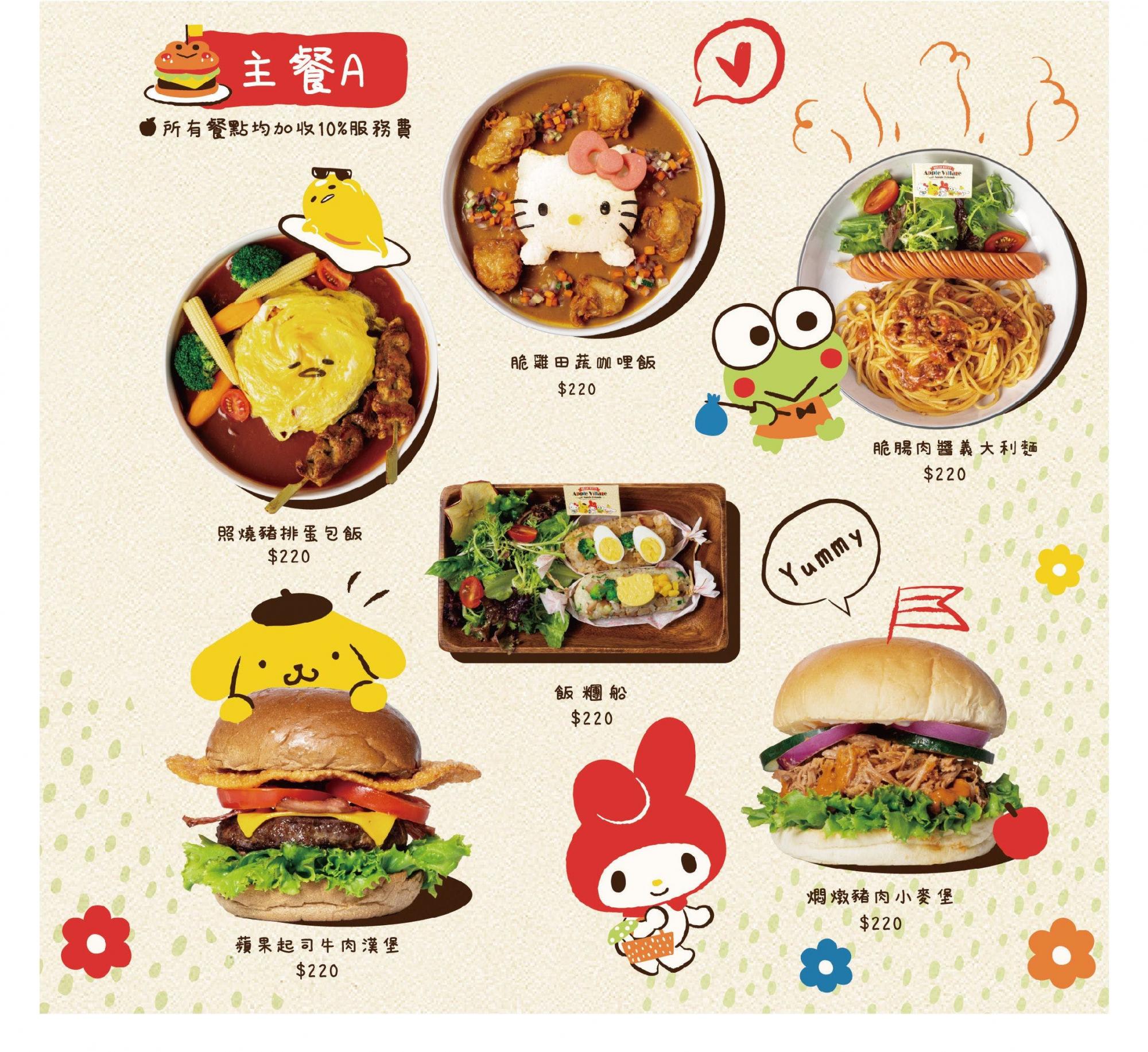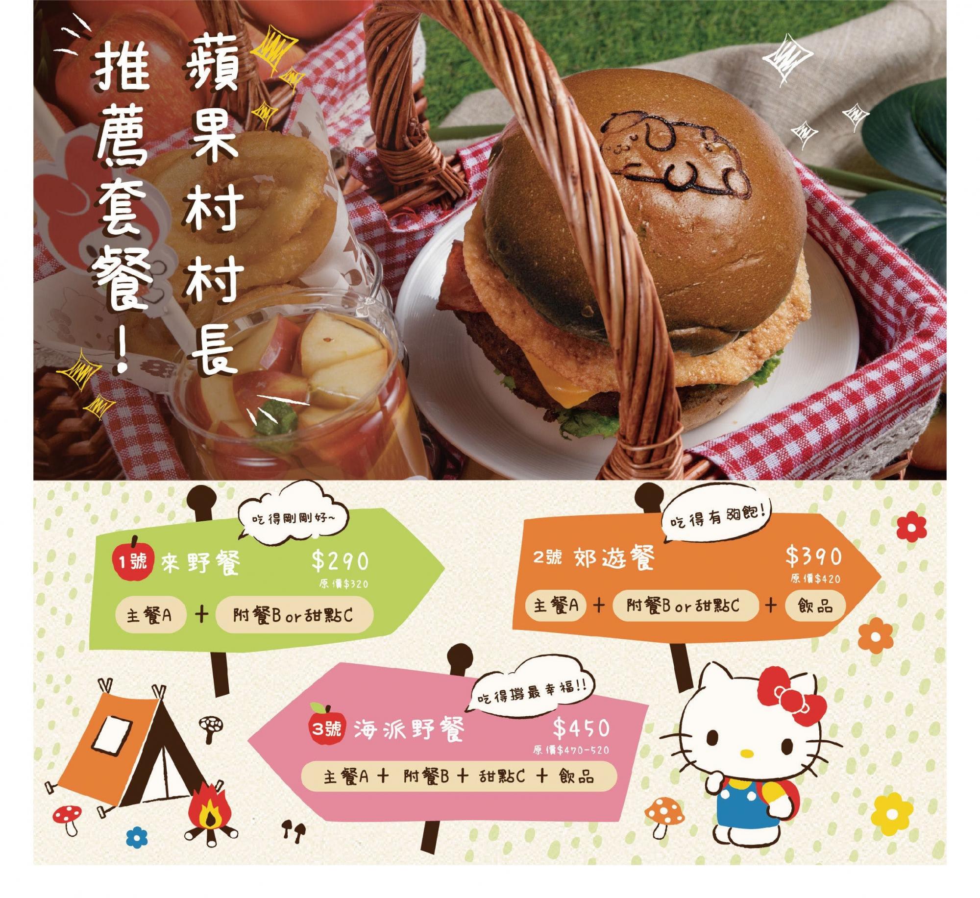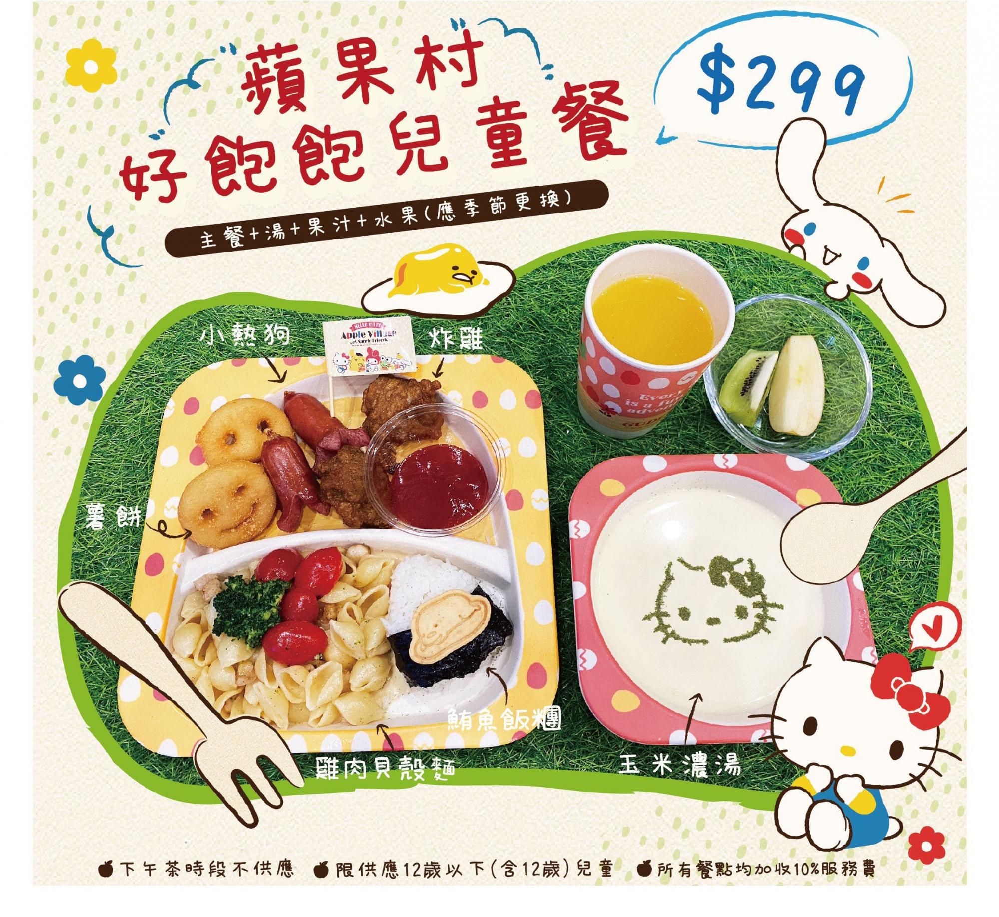 通常來親子餐廳都不會特別在意餐點,不過蘋果村親子餐廳的餐點超吸睛,幾乎每樣餐點都有融入三麗鷗明星,太可愛啦!套餐共有三種組合,還有全新推出專屬小孩的好飽飽兒童餐~