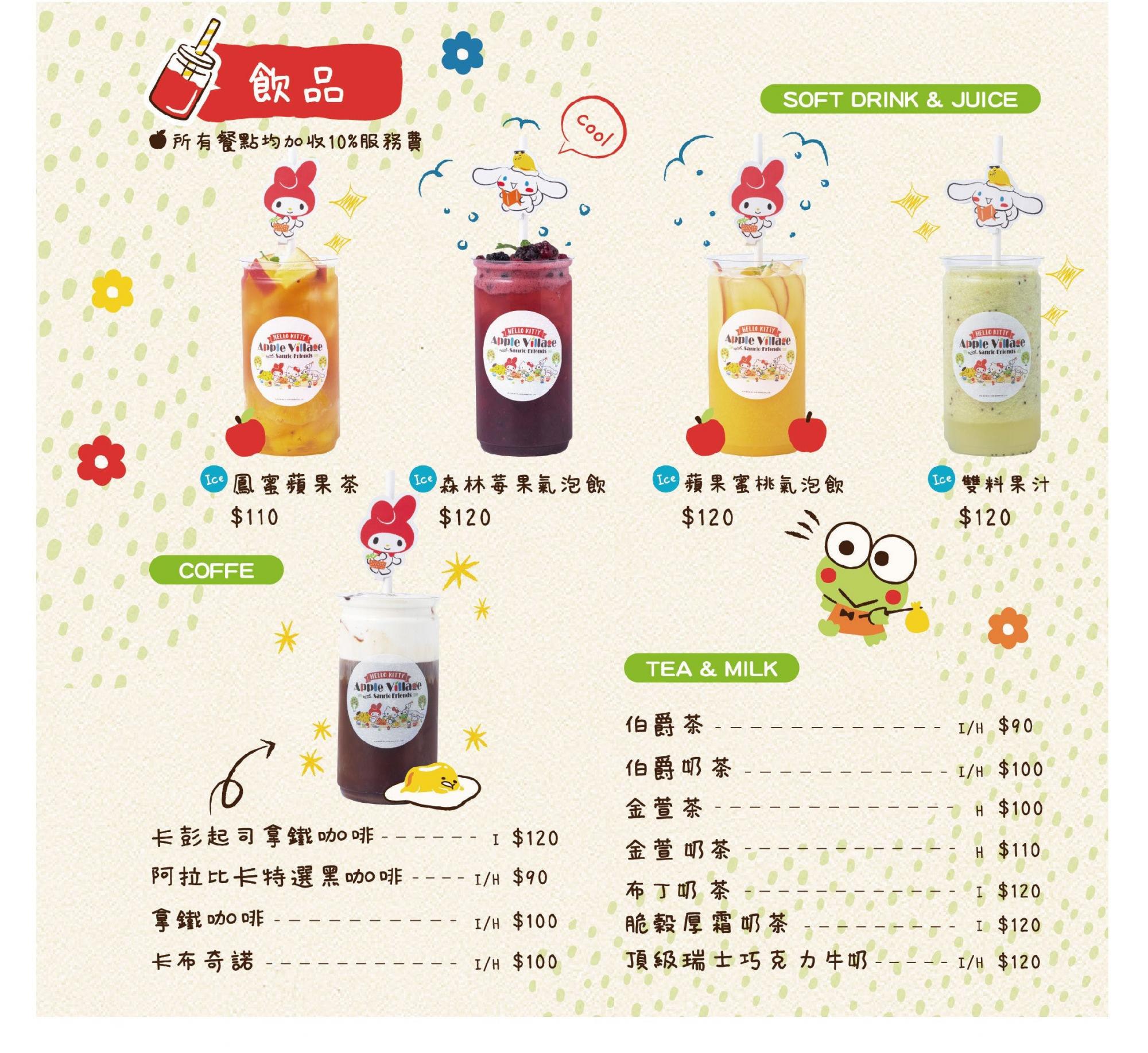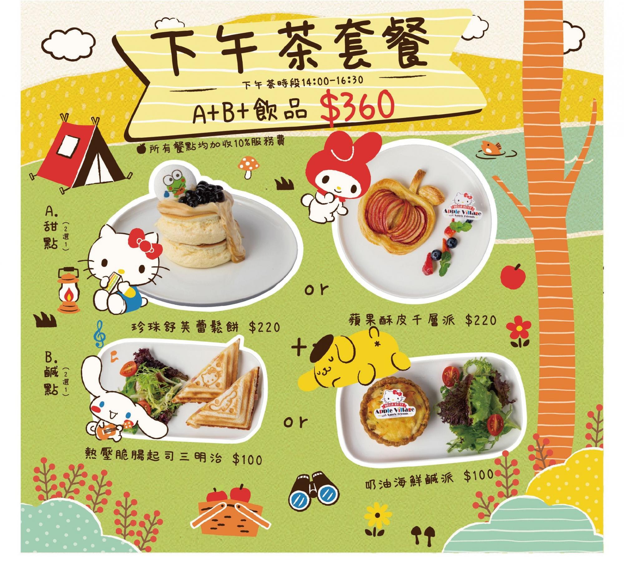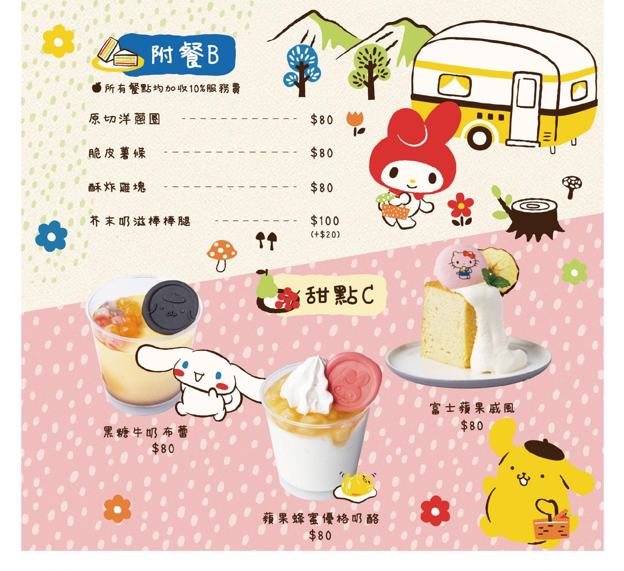 通常來親子餐廳都不會特別在意餐點,不過蘋果村親子餐廳的餐點超吸睛,幾乎每樣餐點都有融入三麗鷗明星,太可愛啦!套餐共有三種組合,還有全新推出專屬小孩的好飽飽兒童餐~