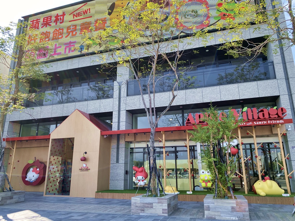蘋果村親子餐廳位於苗栗頭份,一下頭份交流道就到,餐廳旁有嘟嘟房停車場,距離竹南火車站也只要15分鐘車程,無論開車或搭火車前來都蠻方便~三麗鷗六大明星已經在門口等著囉!