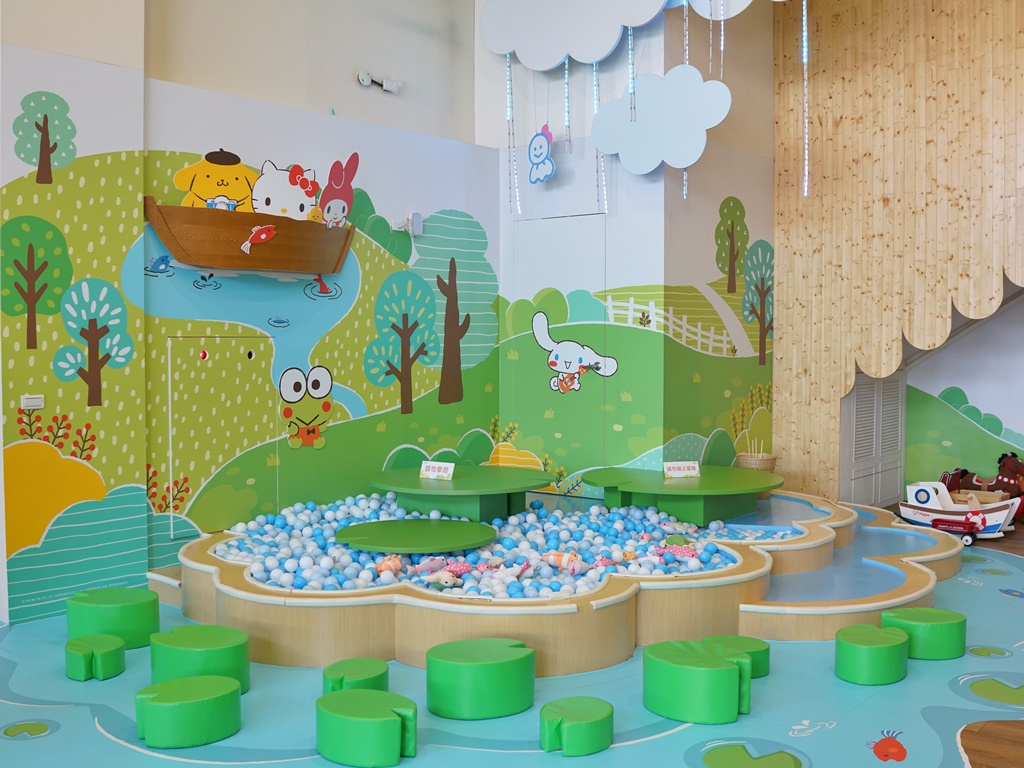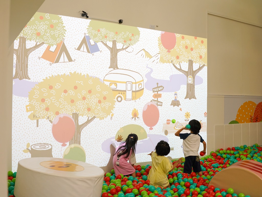 還有專為一歲以下幼童設計的【蛋黃哥太陽蛋浴池】,特別圍了一個安全的區域,可以讓小寶寶與蛋黃哥一起在裡面發懶,當然還有放置很多適合寶寶的五感玩具唷!