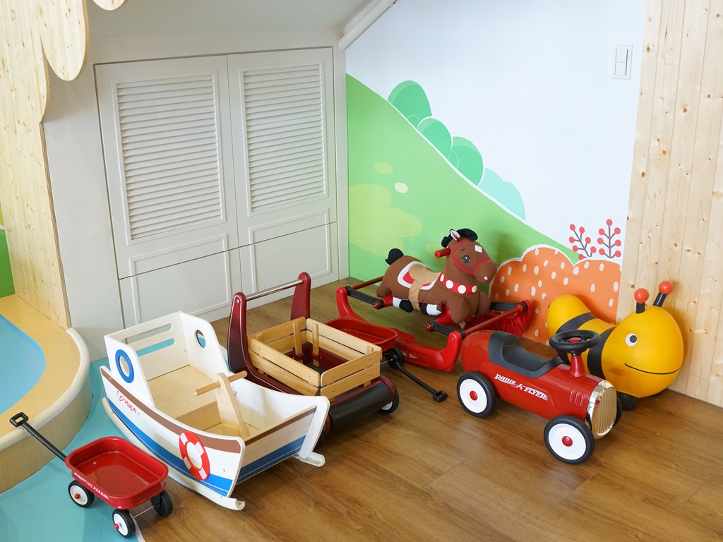 旁邊有放置數台小車車跟搖搖馬,都可以盡情玩樂!