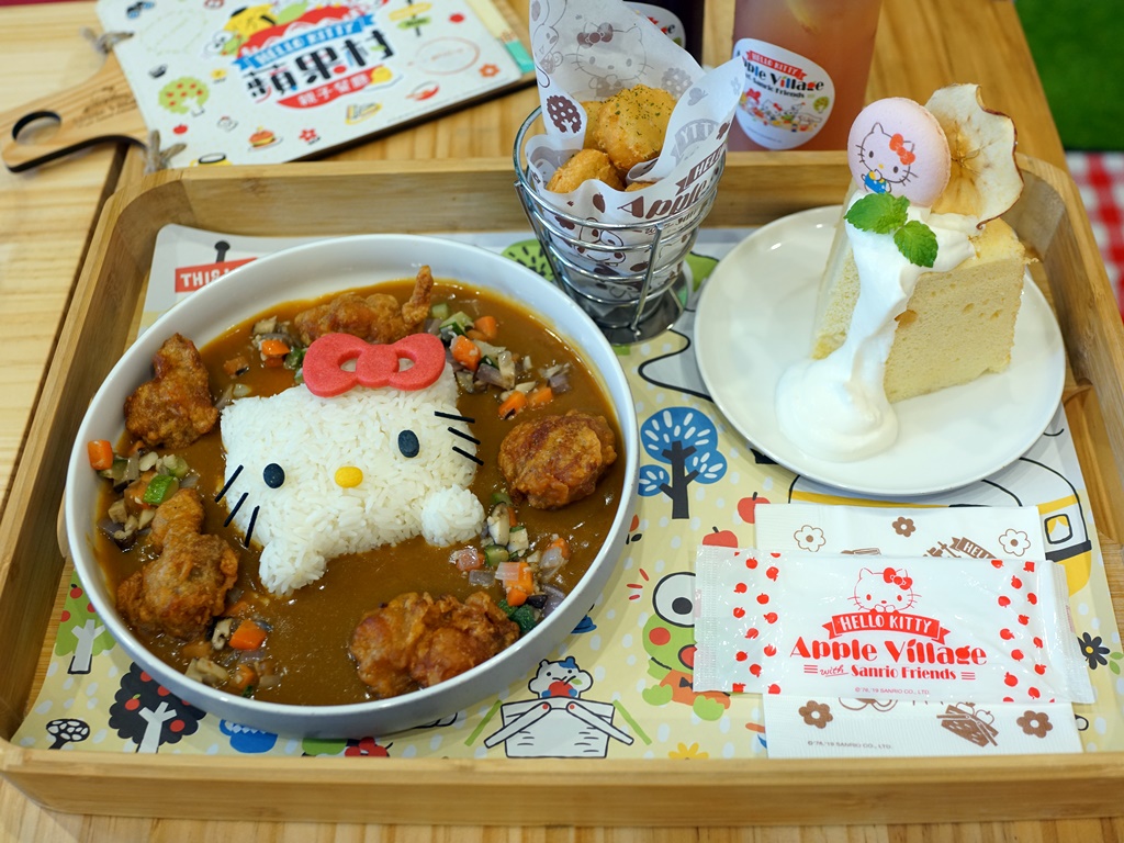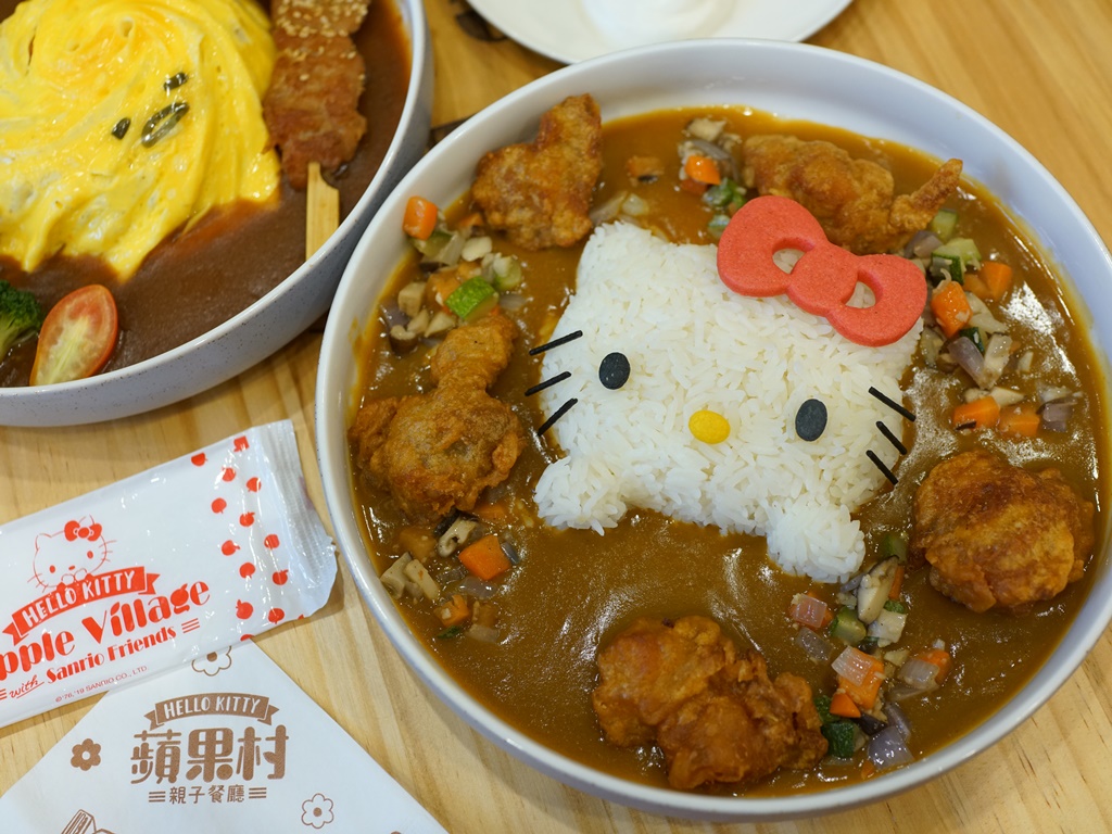 身為忠實 Kitty 迷必點這道,忍不住快門按了好幾張,一直捨不得吃!基底是偏日式口味的蘋果咖哩搭配炸雞,建議炸雞要趁熱吃,冷掉會變得非常乾硬~