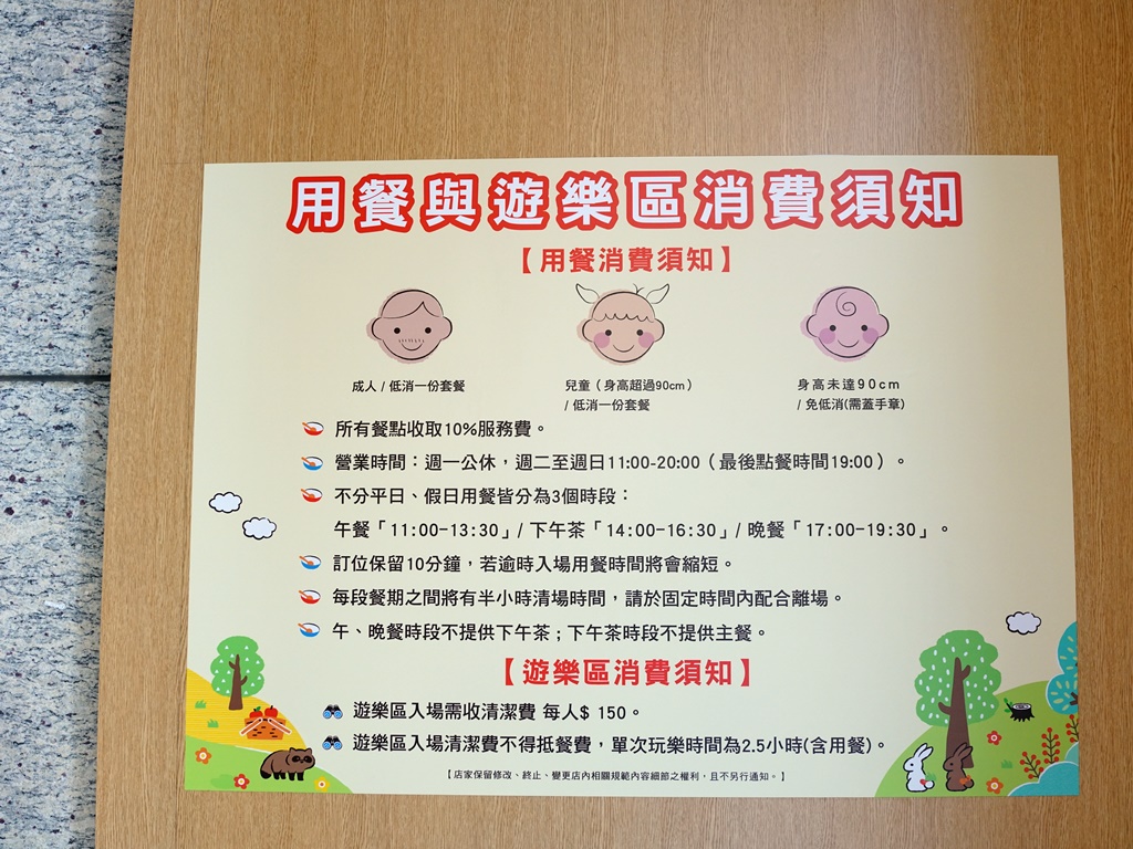 【蘋果村親子餐廳消費須知】有列在門口處,進去前可以再看一下!