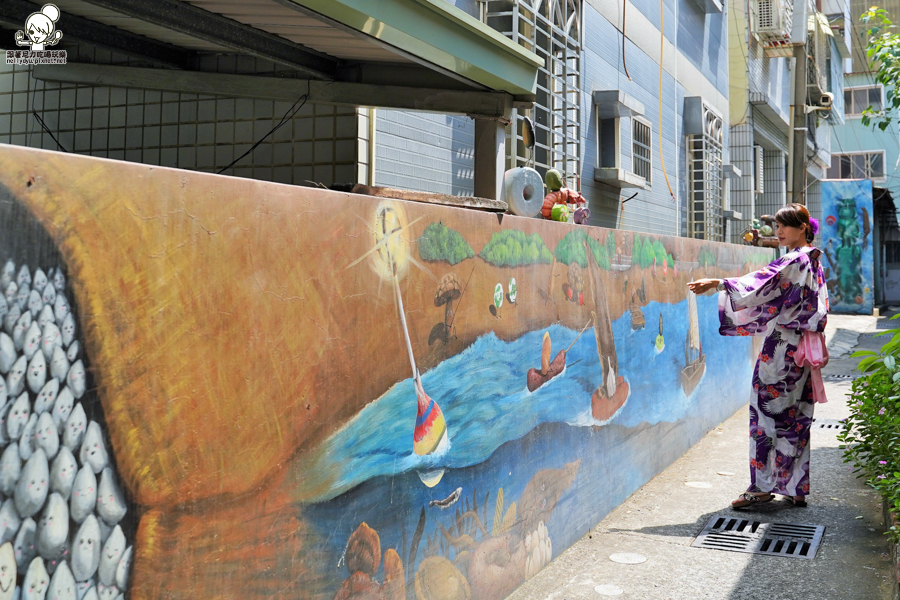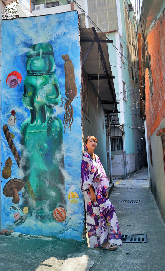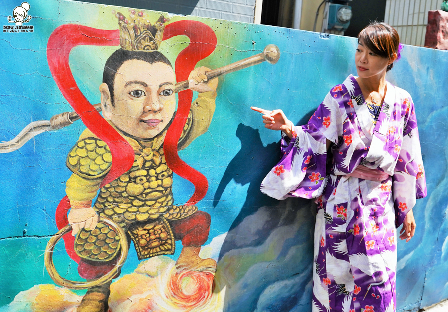 第一次來到幸福九九藝術巷道,許多創意塗鴉,穿著浴衣穿梭巷弄拍照