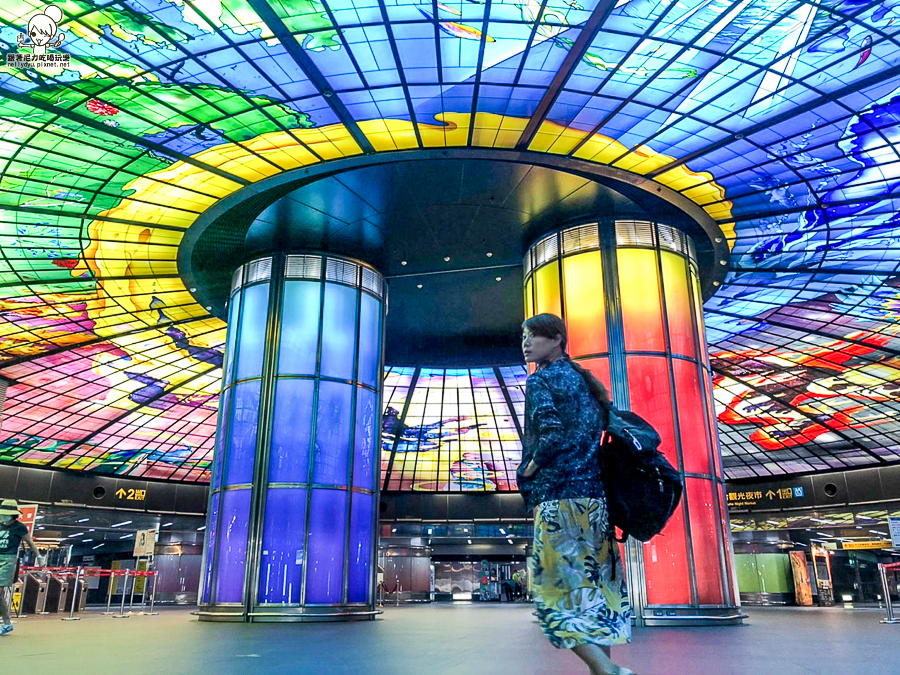 高雄捷運紅橘兩線交換點,人潮最多的 美麗島站穹頂大廳