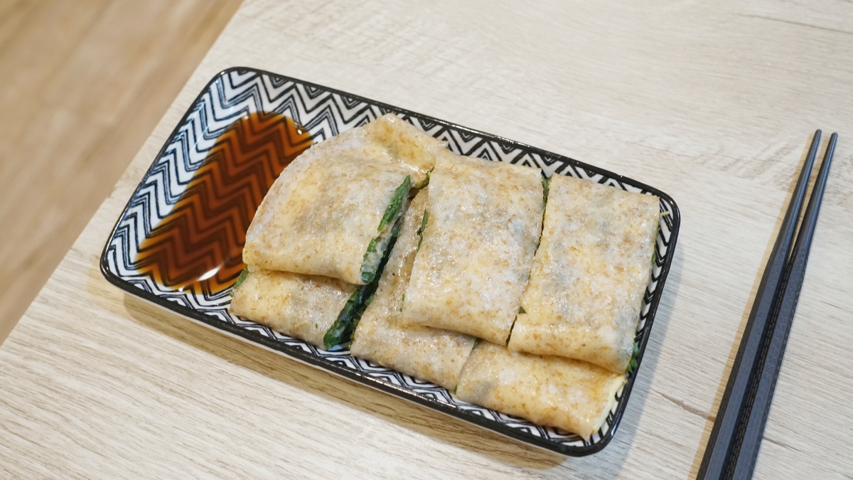 這九層塔蛋餅只要 25 元,而且份量也是蠻多的,我記得前陣子去新竹吃一家早午餐,九層塔蛋餅沒幾片葉子,還蠻貴的我好像有寫哈哈哈哈哈。總之甘味朝食真的讓我有一種滿足的感覺,用料實在,讓人很滿意。蛋餅口感是偏軟,沒有特別爽脆,但是我這個人很簡單,九層塔香氣有出來我就開心。