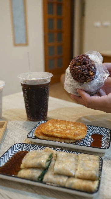 使用紫米製作的飯糰,餡料是基本的肉鬆、油條、蛋、菜脯,整體口感、口味都還不錯,但就是古早味那種,想吃飯糰可以點。