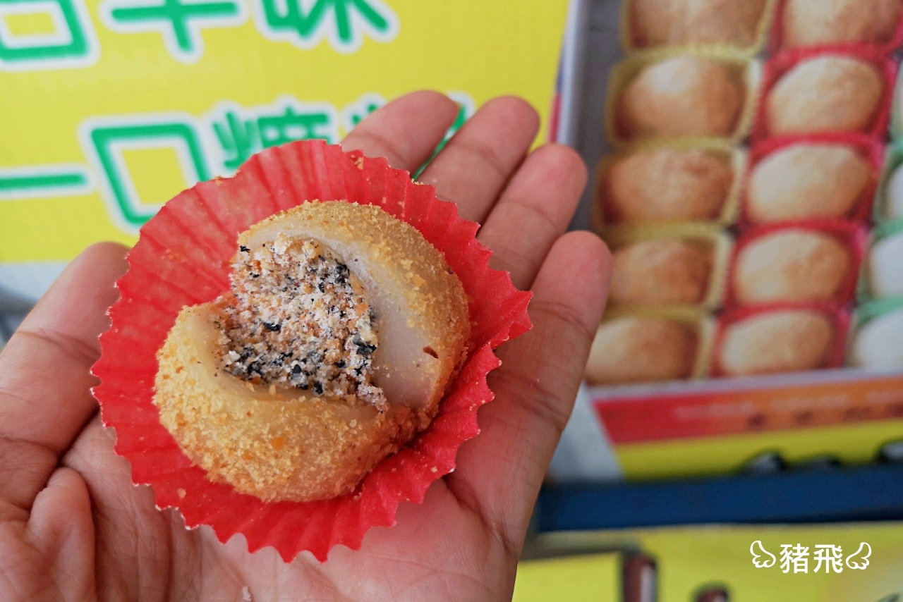 ▲花生口味|帶有顆粒的花生內餡混合芝麻,是一般客人接受度最高的口味。豬飛超愛花生,咬下去滿嘴花生香。