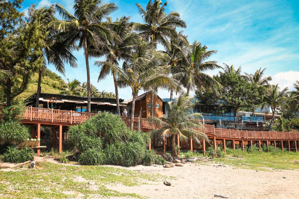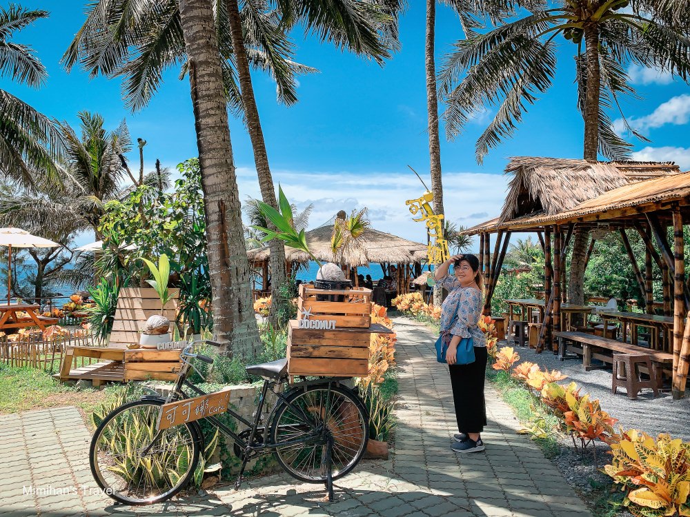 從富山護漁區的海灘上可以看到岸邊有一整排景觀咖啡廳,其中好幾家的網路評價都很棒,我們最後挑了「可可娜咖啡」,環境充滿了南洋高腳屋的異國風情,拍照效果無敵棒根本一秒到峇里島啊,再來寫文跟大家分享。