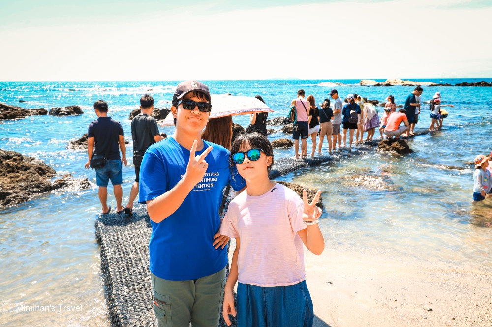 在售票處買好門票,就可以順著參觀步道前往海邊,順道提醒海邊完全沒有遮蔽物,也不會有陽傘店家,所以記得做好防曬工作唷!不然玩一圈回來直接變身小黑人。
