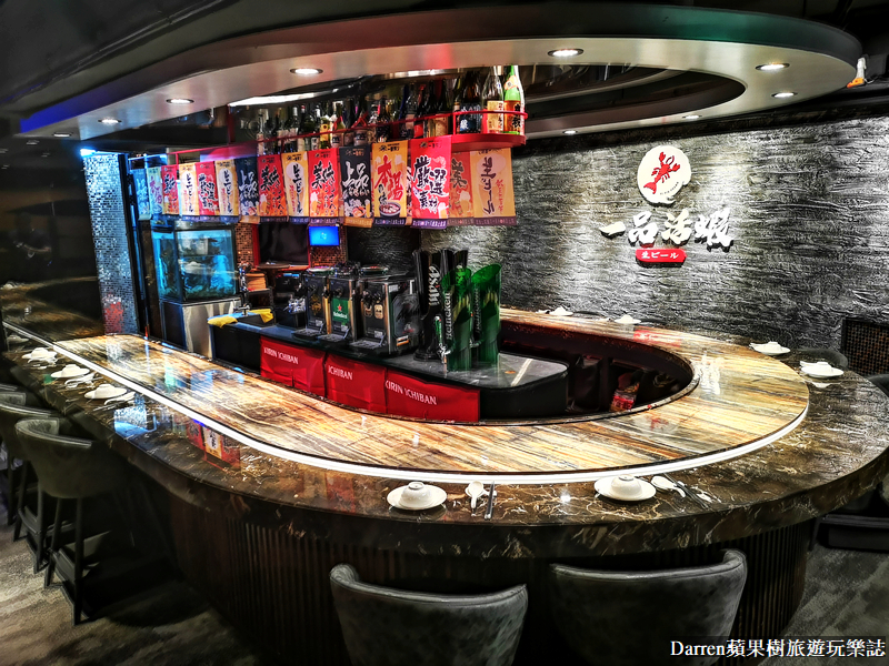 台北一品活蝦安和店コ字型吧台U型酒場供應生啤酒活蝦水缸現點現撈的活蝦料理推薦