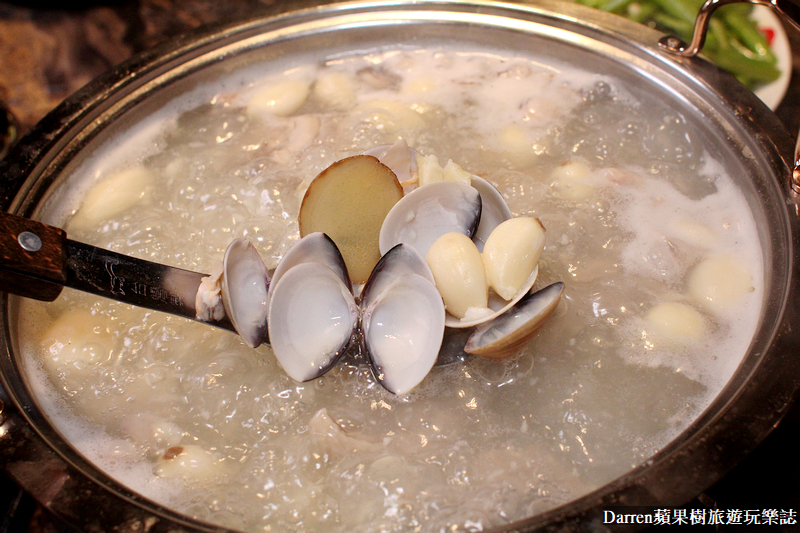 ▲▼蒜頭蛤仔雞湯,這道湯品是樹小編的最愛,來到一品活蝦必點,一上桌樹小編立馬舀了一碗湯,新鮮飽滿的蛤蠣加上大量的蒜頭,以及仿土雞肉,讓湯色呈現乳白色,蛤蠣鮮甜提升湯頭的甜美滋味,蒜頭經過燉煮後也變得鬆軟,完全不會嗆口,雞肉更是軟Q柔嫩,湯頭道最後都被喝道一滴不剩,真得非常好喝