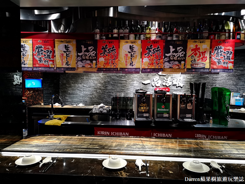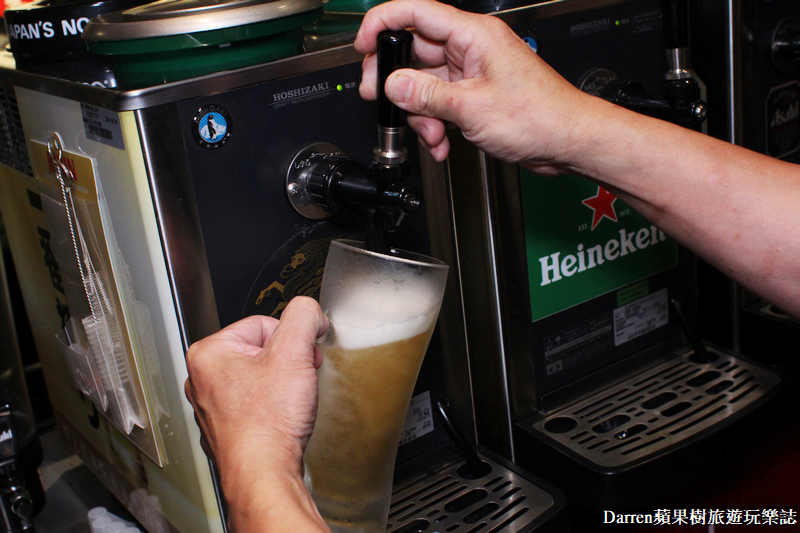 コ字型吧台內有3款啤酒機,三種生啤酒有 KIRIN一番搾啤酒、Asahi生啤酒、Heineken海尼根、黑啤酒等等,來到這裡又讓我懷念起在日本喝酒聊天的旅行時光 ◎喝酒不開車,開車不喝酒,未成年請勿飲酒