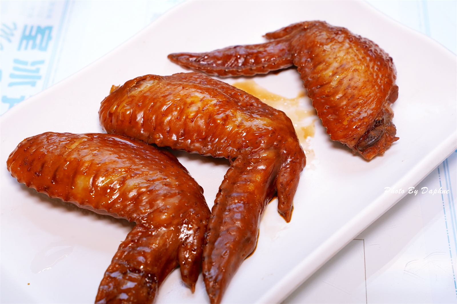 「瑞士雞翼」非源自瑞士,而是香港茶餐廳經典菜式,主要使用豉油、薑、蔥、冰糖和香料調製成「瑞士汁」這種特製滷水,浸入雞翅悶熟烹調而成,吃得出油潤甜嫩的肉質,甜味滷水香氣停留口腔久久不散。