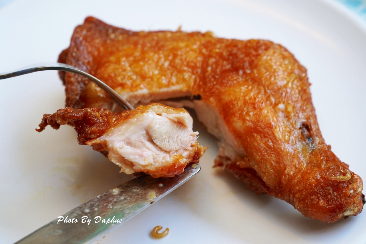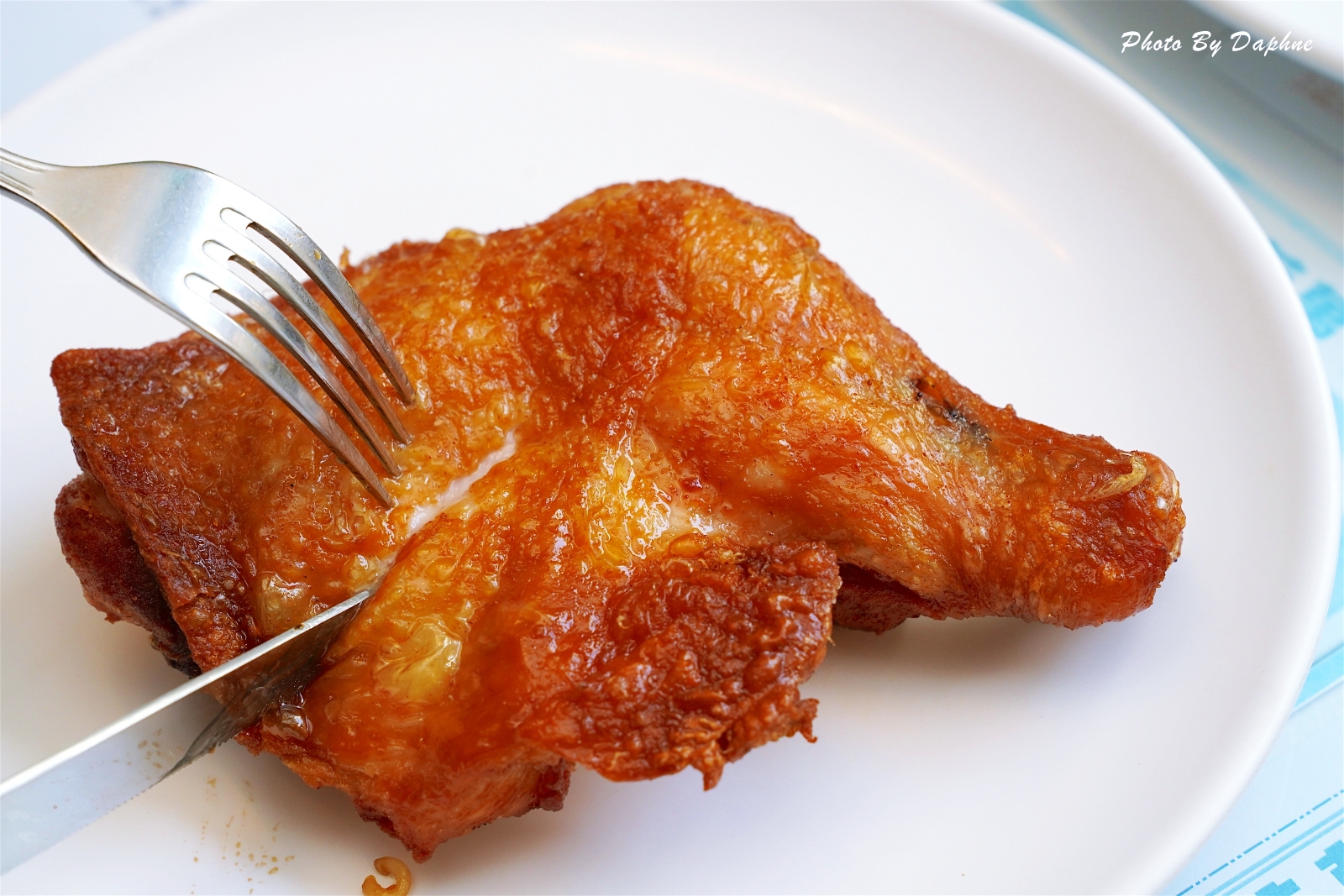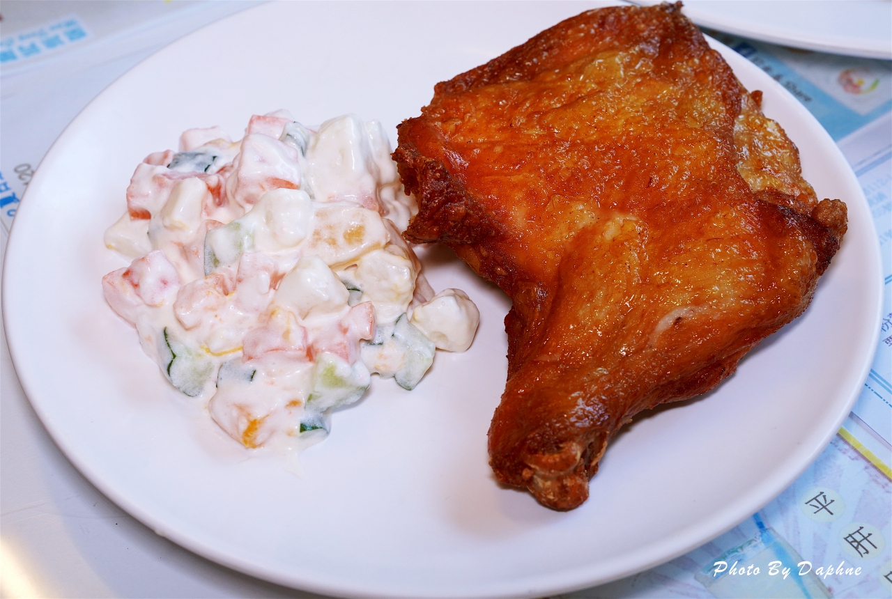 ▼萬芳冰室生炸無敵大雞腿(雞髀) 現點現炸,取整隻雞腿劃刀切筋、置入港式滷水浸熟後,再放入高溫油鍋酥炸,外皮酥脆、肉質鮮嫩多汁好切,搭配粟米湯撈飯、炒泡麵等主食都是銷魂又滿足的滋味。