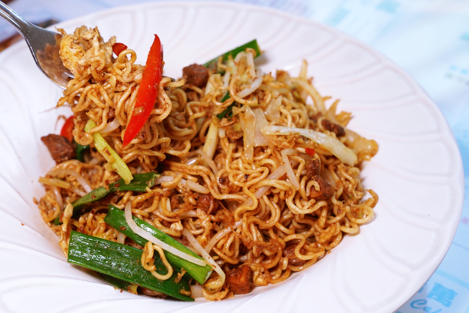 用自家研發的配方,製定食譜料理,跟一般店家採用五香肉丁的罐頭肉不同。拌炒得氣香味美,麵條吸透五香香氣,Q 勁十足,配料豐富。