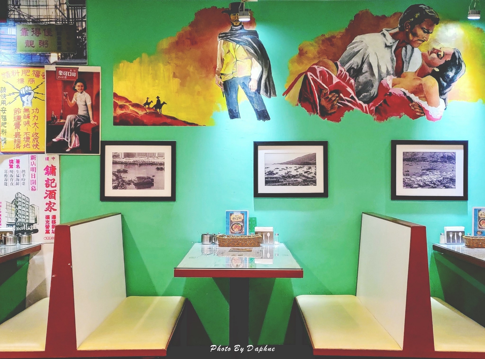 ▼萬芳冰室五年前登台,將道地香港飲食文化移植到台灣,把原物料自香港空運來台,收服許多熱愛飲茶文化的台灣人與在台居住的港人。整體配色與貼附在檯面的磚塊也還原香港冰式懷舊年代感,還有像是水磨石地板、茶餐廳特有的卡式座位,牆上70年代書報,有滿滿的復古情懷,完全是港片裡面茶餐廳的樣貌。