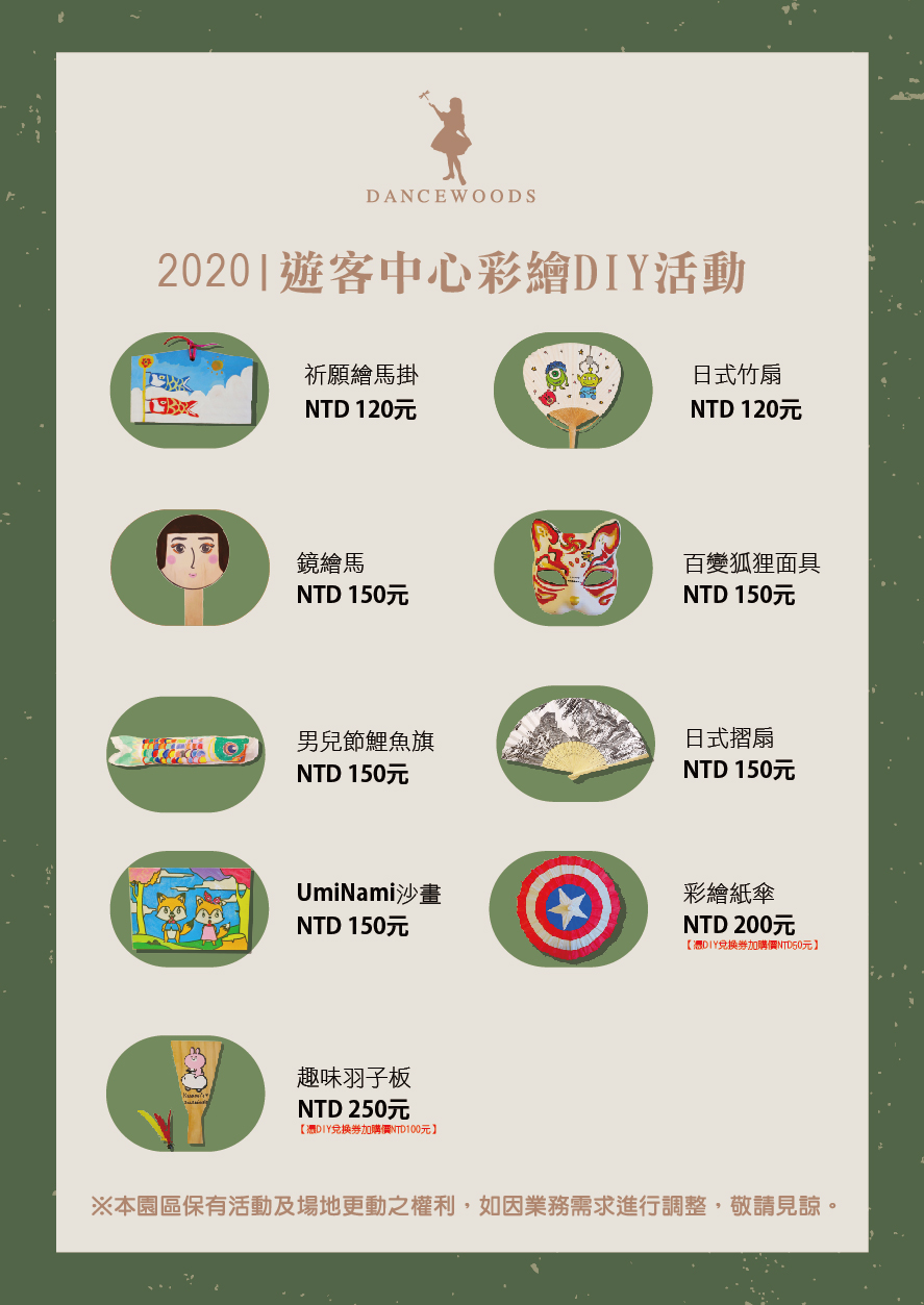 ▲綠舞飯店也推出了很多文創體驗彩繪DIY活動,像是祈願繪馬掛、日式竹扇、鏡繪馬、百變狐狸面具、男兒節鯉魚旗、日式摺扇、日式紙傘及趣味羽子板等,一起來發揮創意吧。