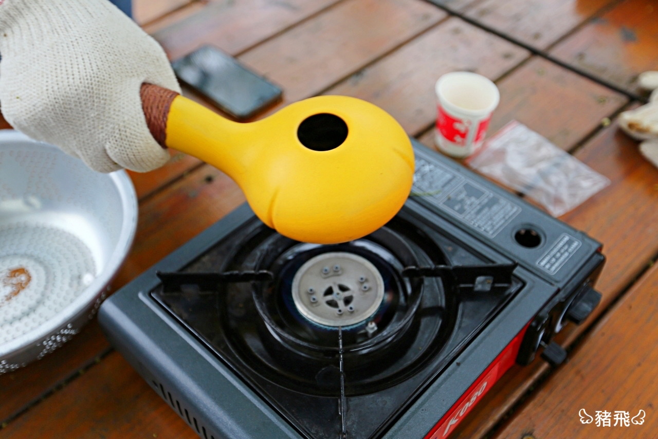 台灣一年咖啡商機高達700億,這個數字大到驚人,那你就知道有多少人都在喝咖啡了。豬飛就是一個重度咖啡成癮者,每天早上必定要喝咖啡才算清醒(笑)。喝了那麼多咖啡從來沒有自己烘過咖啡豆,特地預約了烘咖啡豆+手沖咖啡$350體驗。把咖啡陶壺先在火爐上預熱30秒,倒入咖啡生豆,距離火源大約10公分處開始順時針或逆時針轉圈,等到開始冒白煙、聽到爆破聲響就是烘豆快完成了。最後把烘好從青綠色變成咖啡色的豆子倒入過篩,讓銀皮脫落,待涼後就能包裝起來帶回家紀念。
