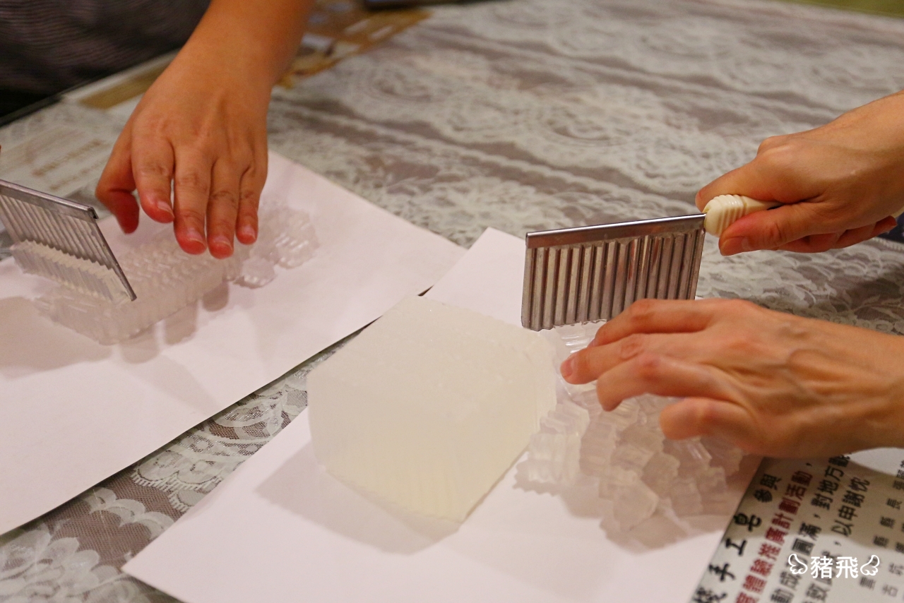 好多女生喜歡的手工香皂在古坑也可以體驗喔!做手工香皂最大樂趣是可以加入喜歡的香味、做成喜歡的造型,我說的輕鬆但從來沒有動手做過,這可是頭一遭。這家手工皂體驗用了古坑咖啡做成咖啡香皂,超有在地特色。磨碎的咖啡粉跟皂液攪拌均勻,倒入模型,待涼就大功告成。咖啡香皂除了有淡淡的咖啡香氣還能去角質,讓皮膚變得光滑喔。