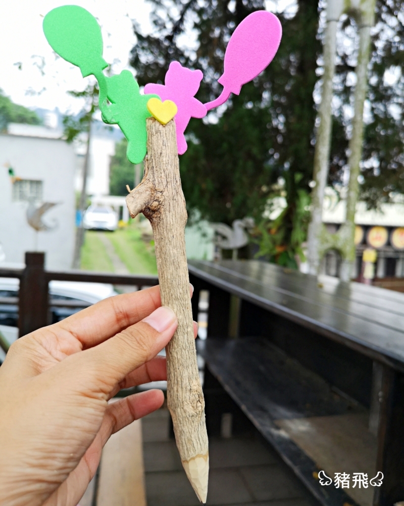 DIY體驗較具特色的是利用在地咖啡樹的樹枝去做鉛筆「樹枝鉛筆」,看似簡單的鉛筆其實挺耗費功夫耶!許多遊客體驗過都意猶未盡,介紹給朋友再一起來體驗。電腦用久了,許久沒有拿起筆寫字,更何況是鉛筆。有趣的是選用粗礦的咖啡樹枝,用電鑽在筆中間鑽動,放入筆芯,再用刀片削尖筆頭,最後黏上各種造型就是一支獨特的咖啡樹枝鉛筆囉。