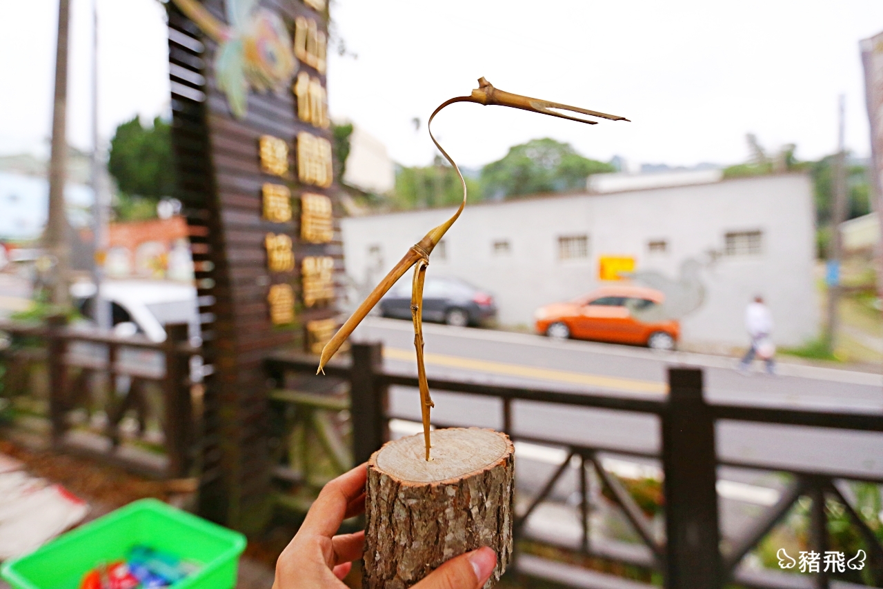 古坑除了產咖啡、柳丁、鳳梨之外,竹子也是一大名產!就有在地店家把竹子做成一隻隻造型可愛的「竹鶴」。沒想到看似簡單的竹鶴其實需要有點耐心才能完成,光是用刀片把一根根細長的竹子削成鶴的形狀,再用火烤定型,固定到木頭底座上面,這整個步驟下來完全是考驗平時累積的耐心。