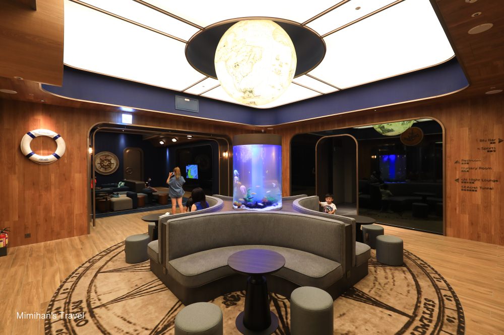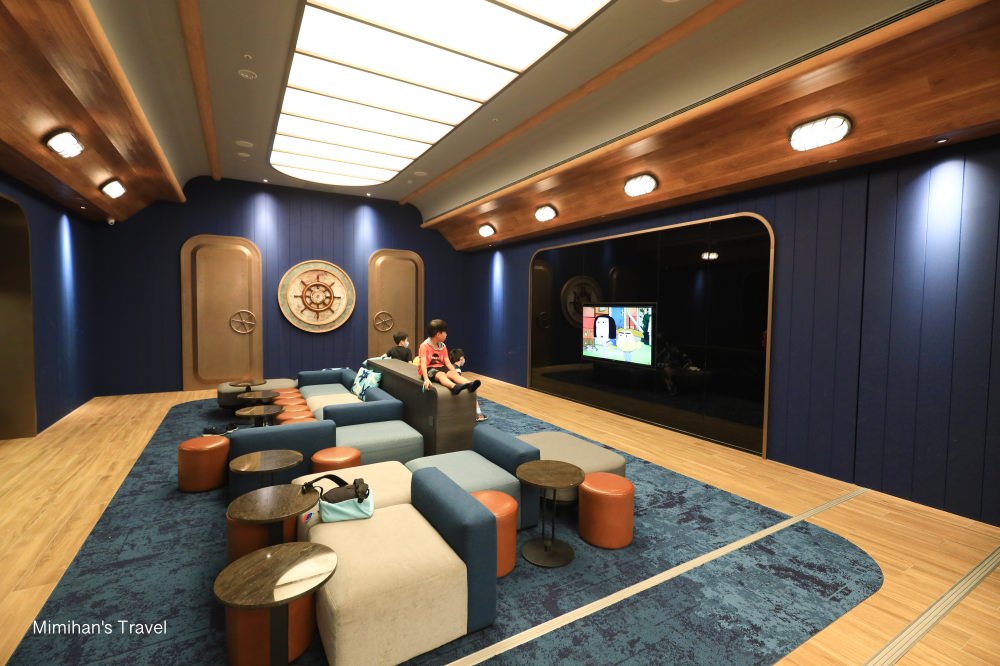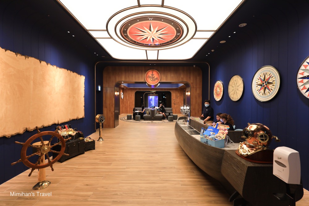 接著簡單看看COZZI Blu和逸飯店桃園館裡面的休閒設施,Cabin ZONE娛樂休閒中心位於三樓,裡面加入了潛水艇、方向舵、羅盤指針、深海寶藏⋯等許多與海洋相關的元素,可以在櫃檯報名「親子探險活動」參加例如海底歷險記、聆聽海洋故事等,適合帶著小朋友來玩。(詳細活動時刻表