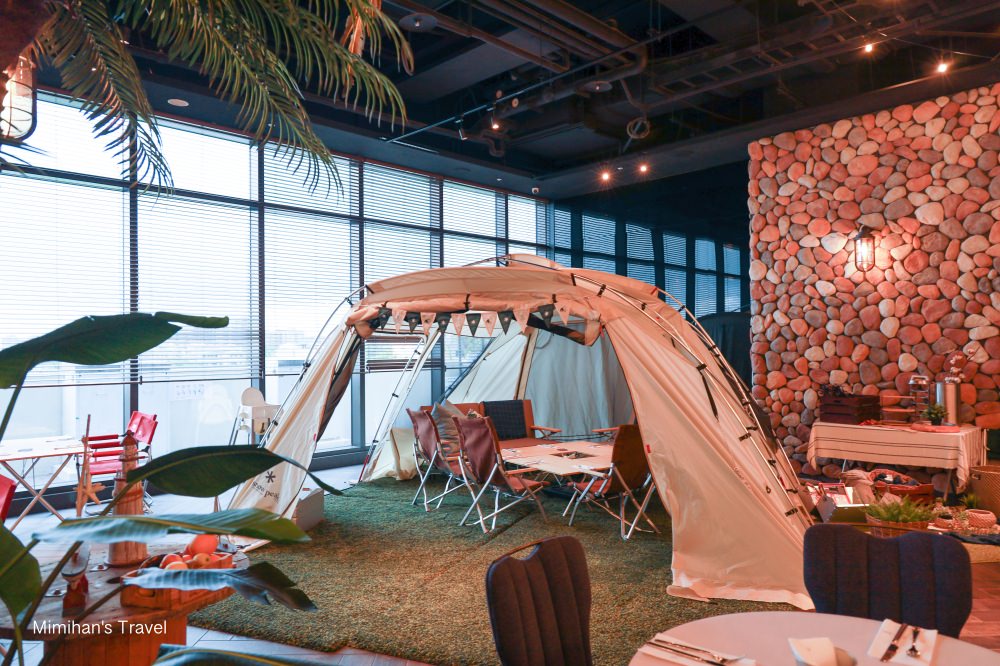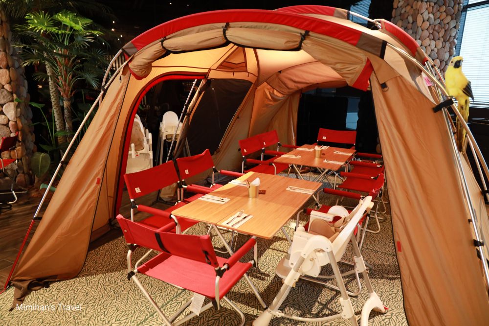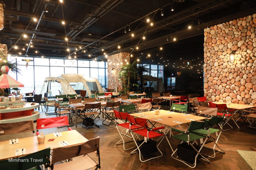 其中還與日本知名露營品牌Snow Peak合作,佈置了全國獨家「BBQ室內露營野餐區」,營造出與眾不同的用餐氛圍,可以請工作人員安排這區的座位,在營帳裡用餐的感覺很特別呢~