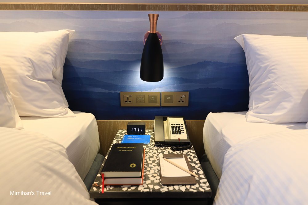 床頭除了燈光中控,還設有USB插座、萬國插座,以及一個小鬧鐘方便大家使用。