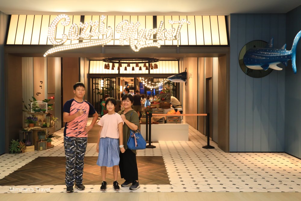COZZI Blu和逸飯店桃園館的【Cozzi Market 逸・市集】自助餐廳有提供早/午/晚餐,裡面以海邊碼頭市集為概念來規劃,會看到好像一攤攤的餐車蠻有趣的,我們訂房有含早餐,現場報房號即可入場。