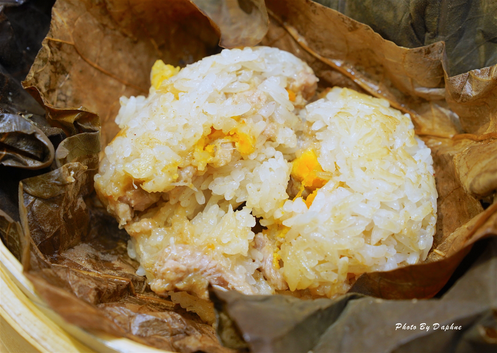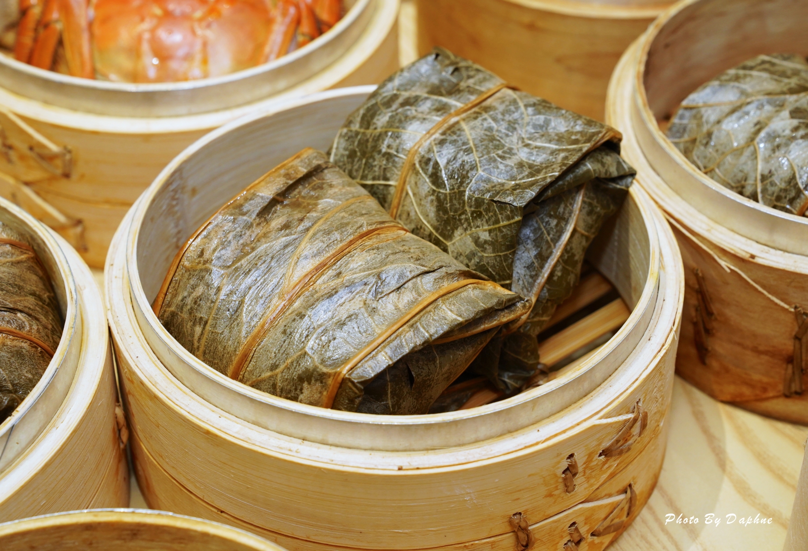 ▼用荷葉包著蒸熟,米粒軟透不油,蟹黃等食材香氣均勻分佈在每一粒米飯中,一拆開來會先聞到荷葉清香的氣味,緊接著是多種食材鮮香蔓延,也是會想猛吃而忘了飽足感的美食。