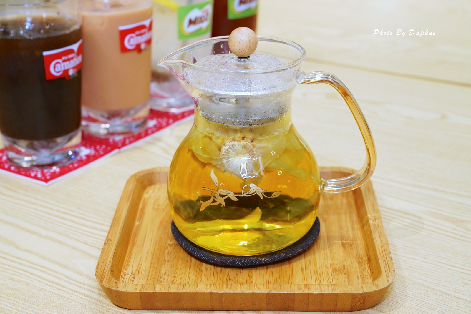 Daphne 點的是港點酸梅汁,順口不酸澀,去年喝的凍檸茶中放幾片清香的檸檬片,飲用時用茶匙或吸管,搗現切檸檬片可調節想要的酸度,才是老司機喝法。不會太甜膩的凍檸茶,不管搭配各式港點、海鮮都對味!
