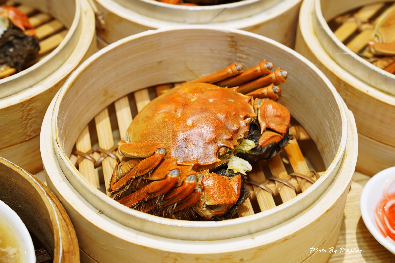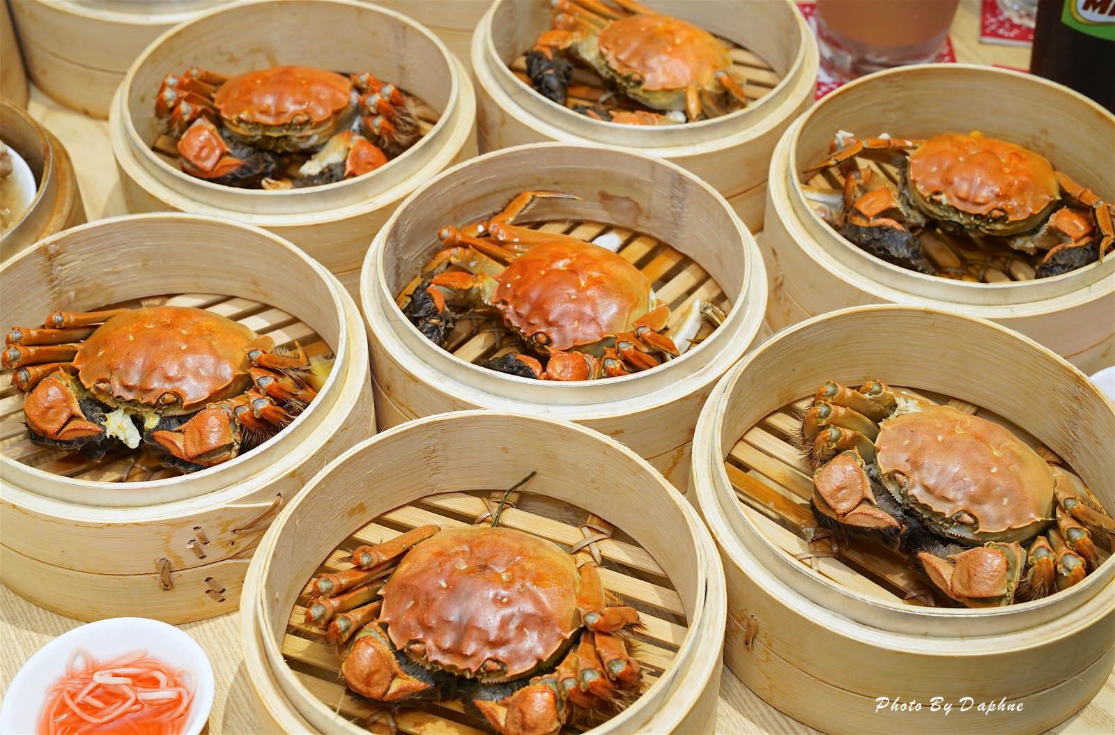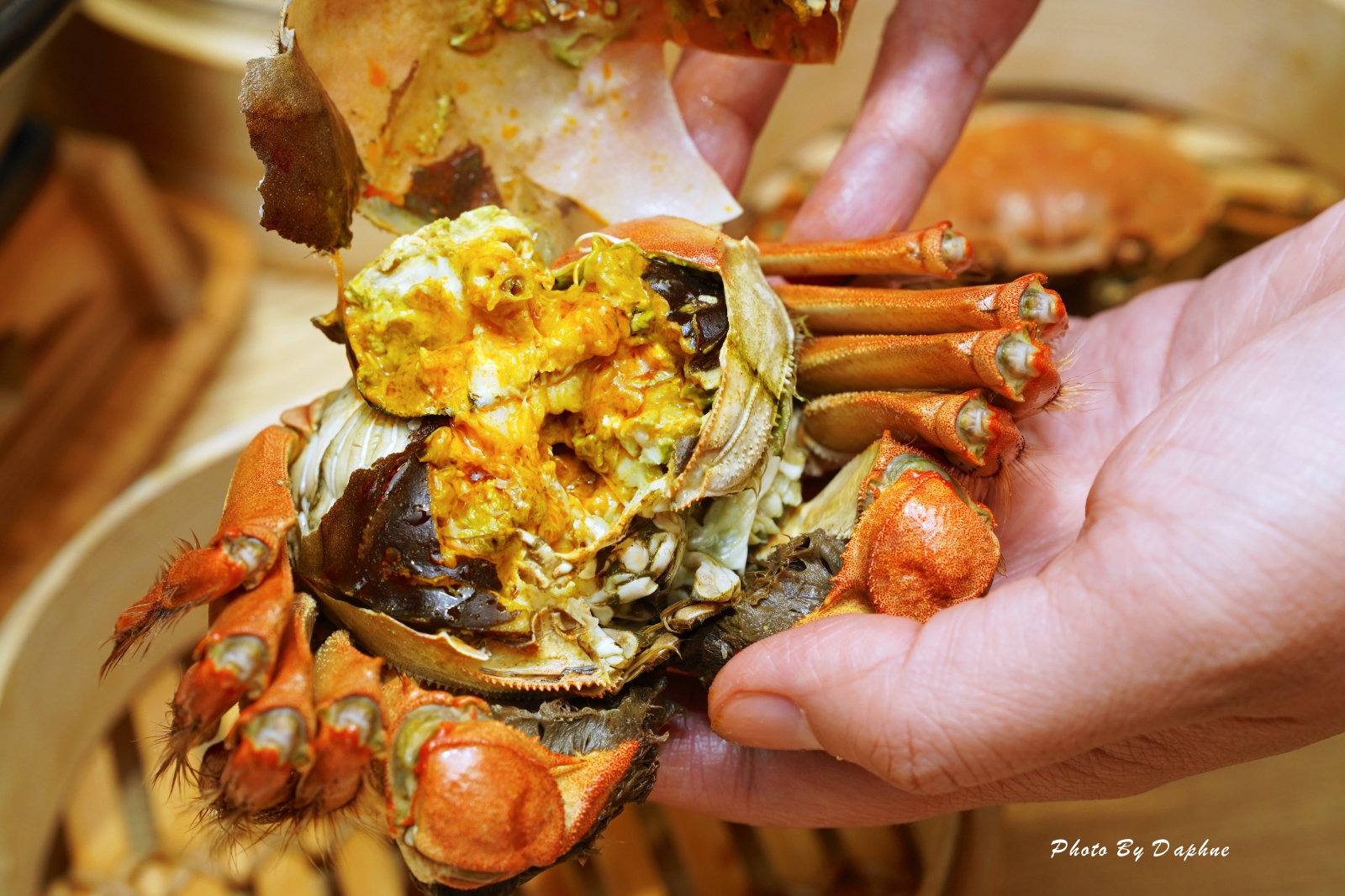 ▼採用傳統清蒸法,保留大閘蟹的原味活體蒸熟,放在蒸籠上桌的大閘蟹還帶有蒸氣,最能引出鮮美滑口的蟹膏。很多人不會肢解,所以覺得吃大閘蟹很麻煩,但是店家都有幫每個人準備一套工具肢解大閘蟹,所以很容易食用。