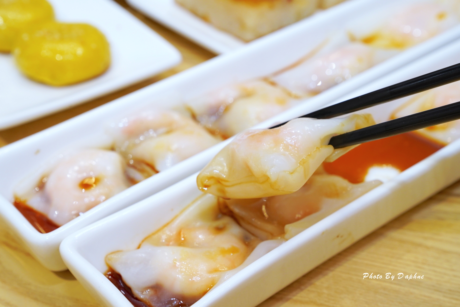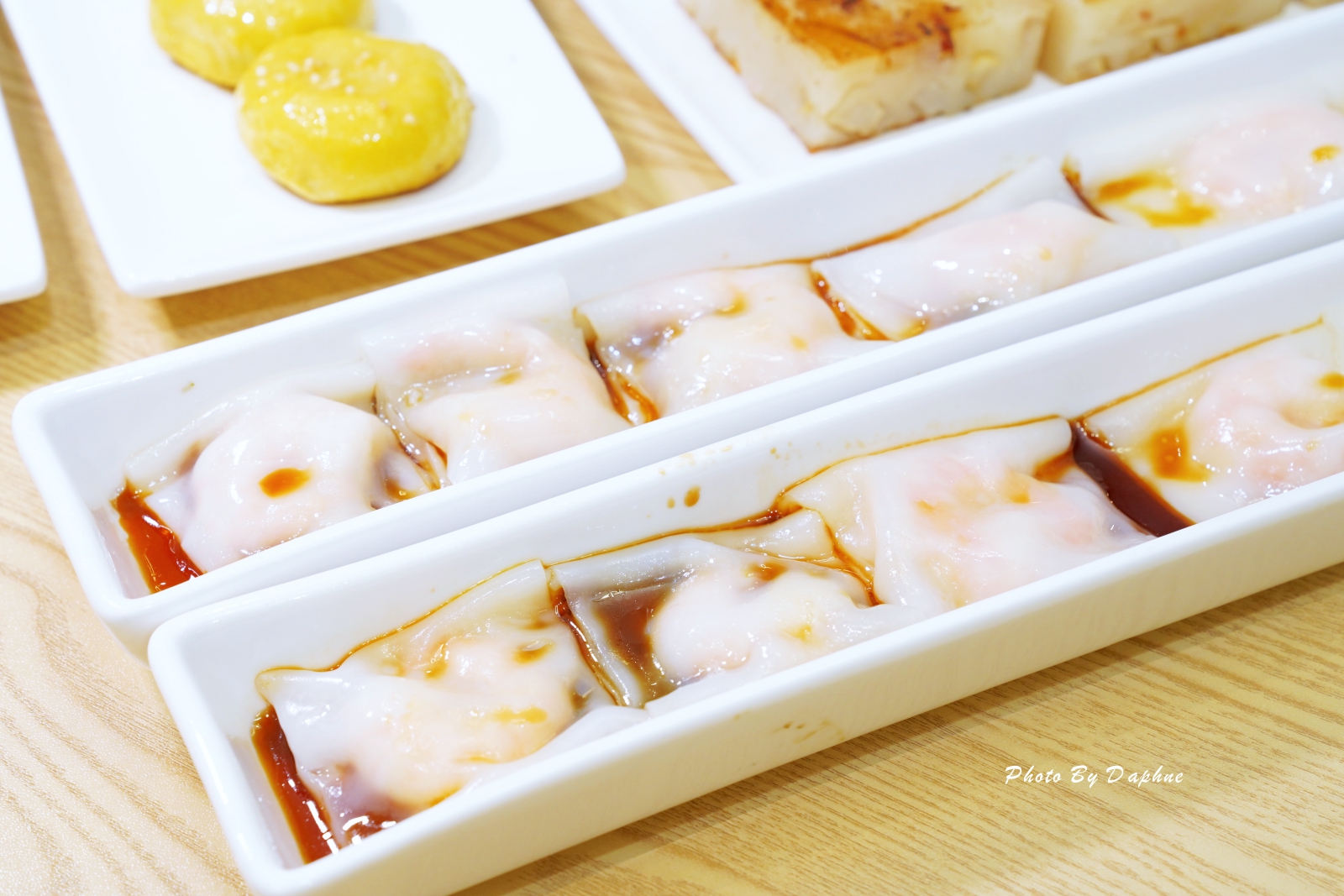 ▼有些港點的腸粉出整條沒切斷,讓幾個分食的人很尷尬,而港點大師都有先分切好,一段腸粉搭配一顆蝦仁,十足貼心!