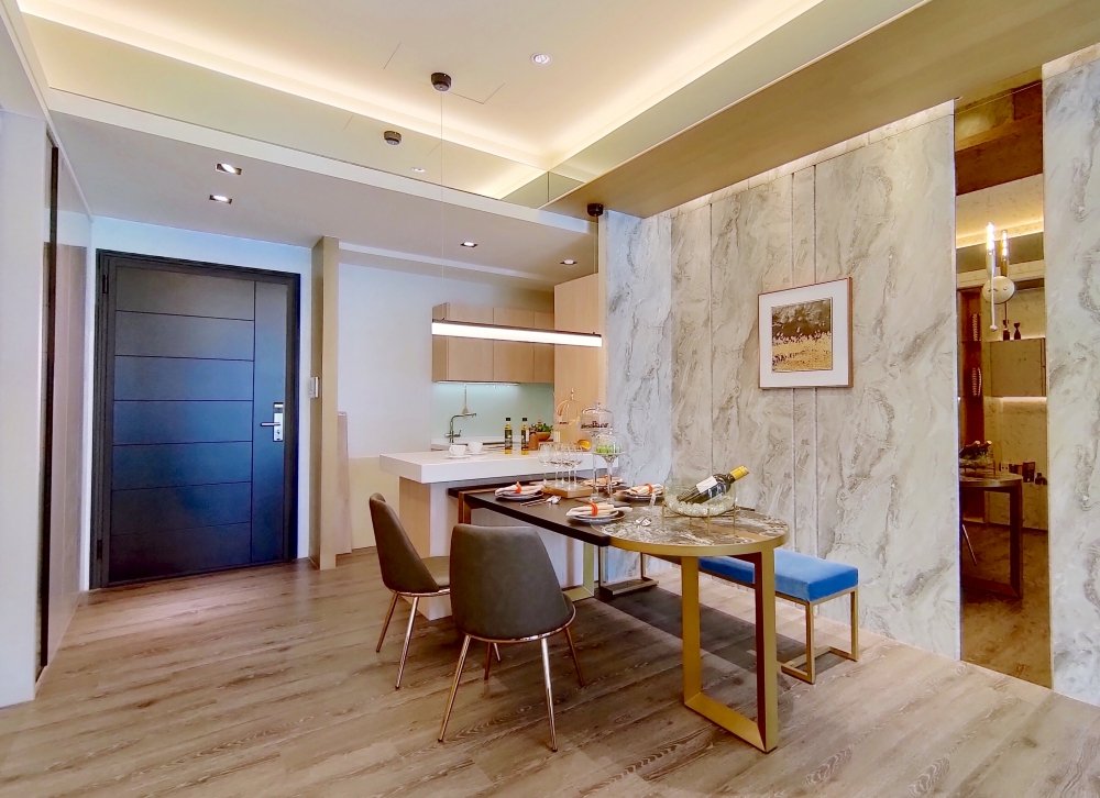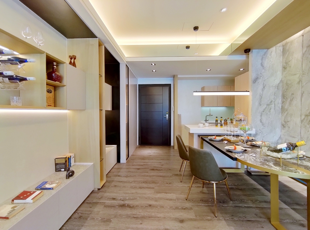 客廳與餐廳已做好結構系統調整,無橫樑設計,親友、家人相聚,更舒服自在。
