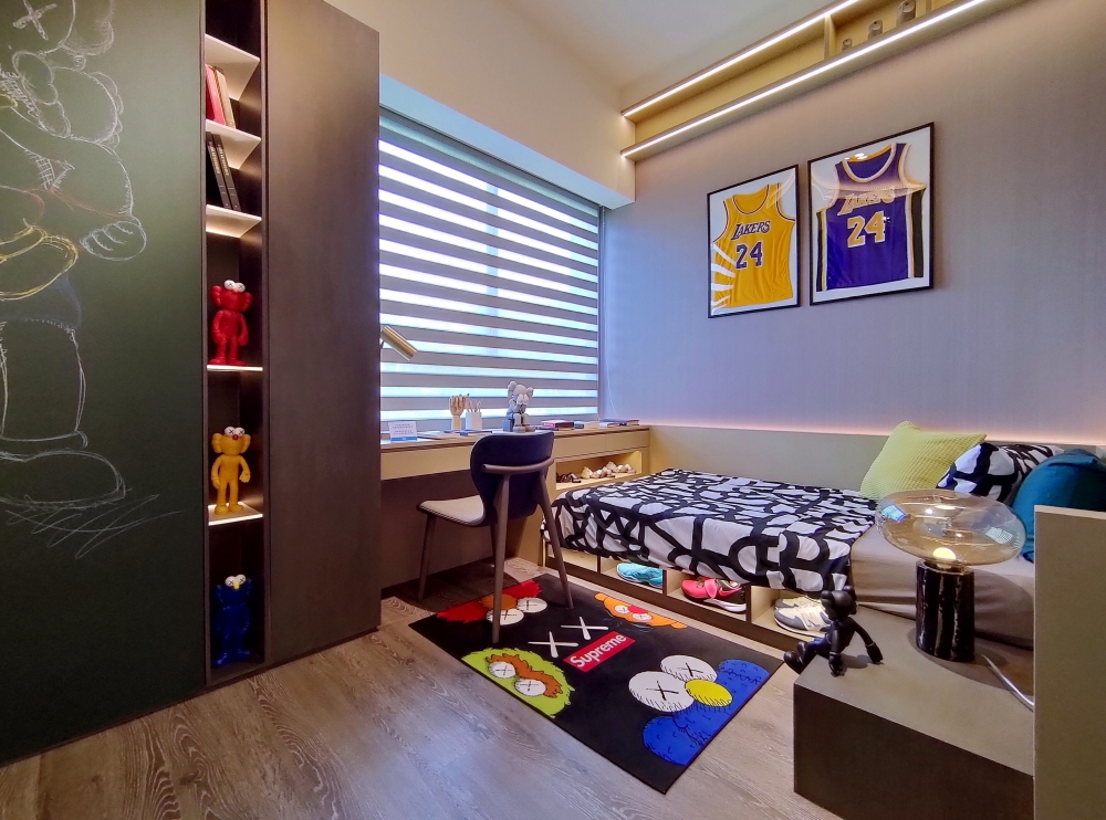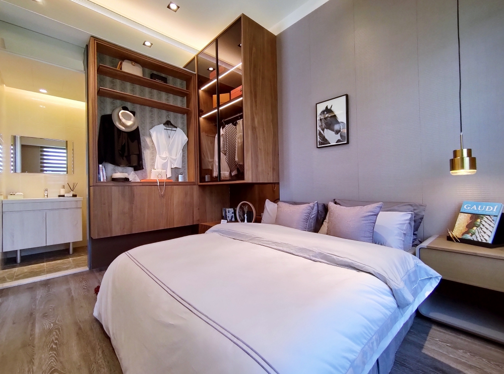 很喜歡豐邑風禾寬敞的客廳,能讓全家人在客廳、餐廳好好聊天吃飯,凝聚全家的感情。現行樣品屋的房間規劃尺度適中,也由於是預售屋的關係,所以想要把房間或是客廳加大,都可以藉由客變設計來調整,豐邑風禾格局都很方正,利於將來的裝潢、空間規劃。