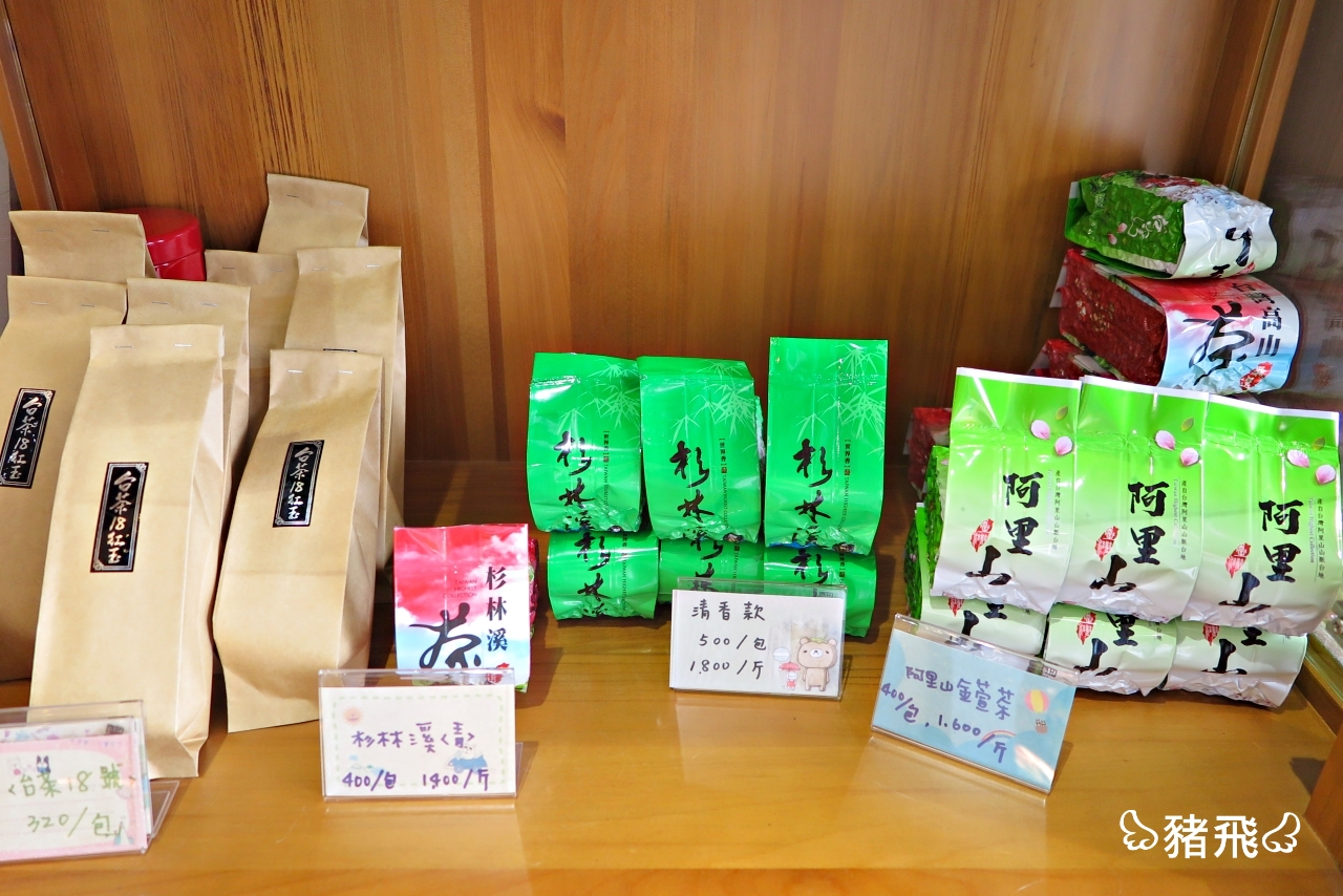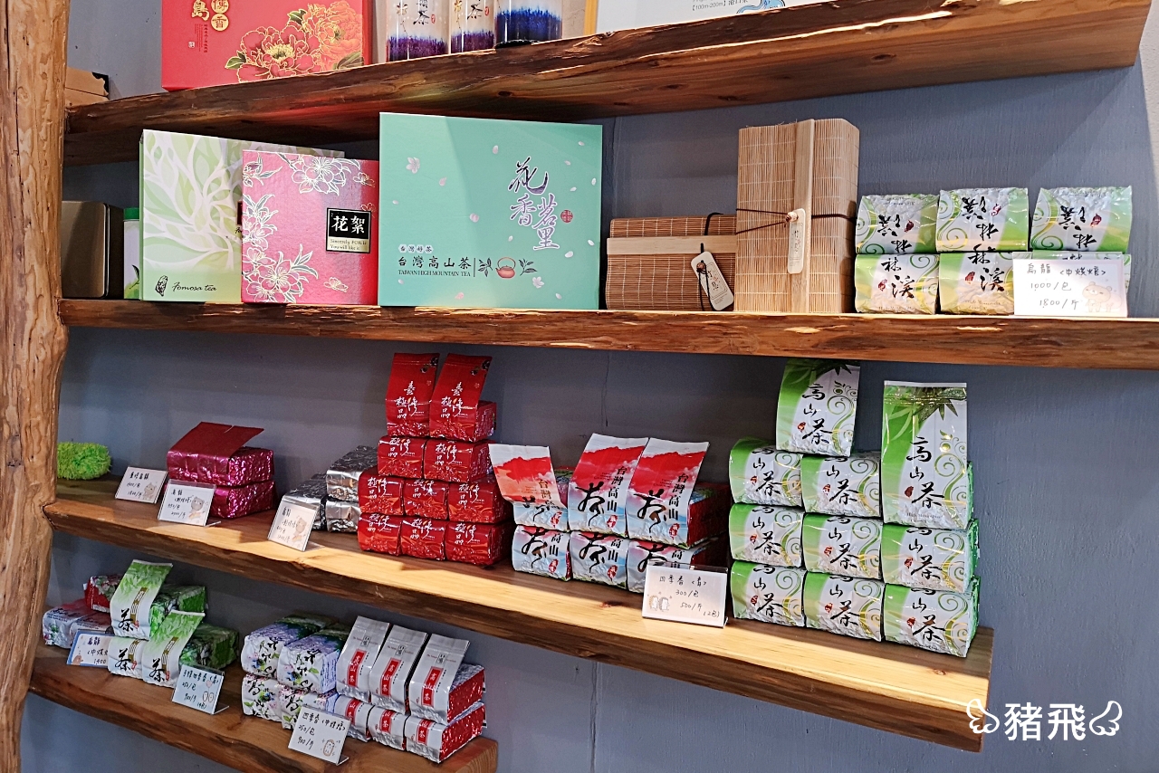 ▲從一進門就看到架上各種茶葉選擇,除了自家種植的杉林溪烏龍茶以外,也有不少與其他地區茶農合作的茶種。像是阿里山金萱、杉林溪烏龍茶、蜜香紅茶、四季春,這些都是店裡有在販售的茶飲,喝喜歡了也可以買茶葉回家沖泡。
