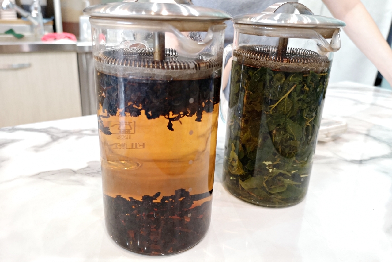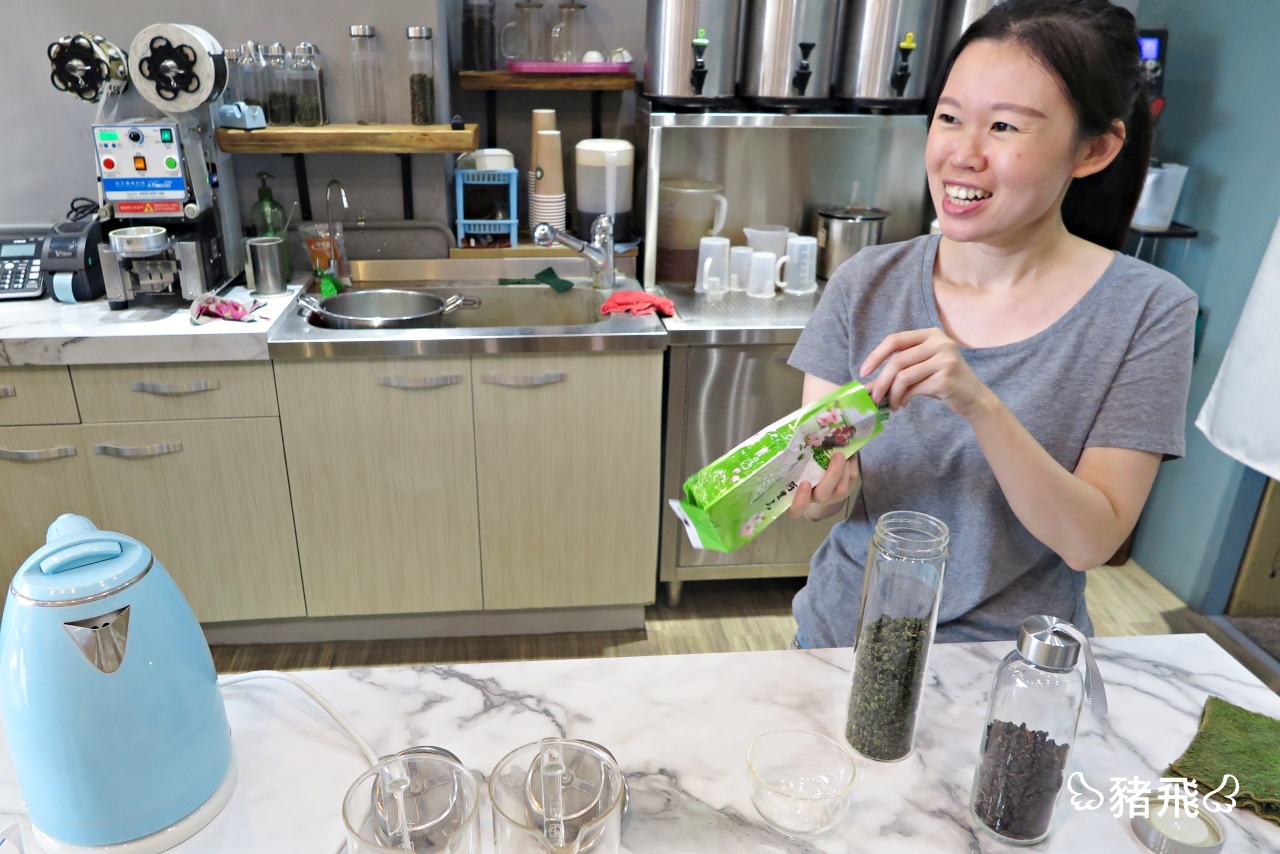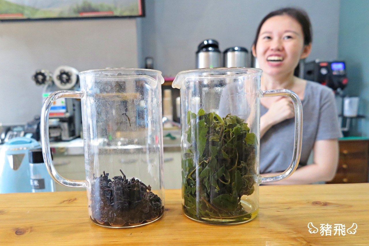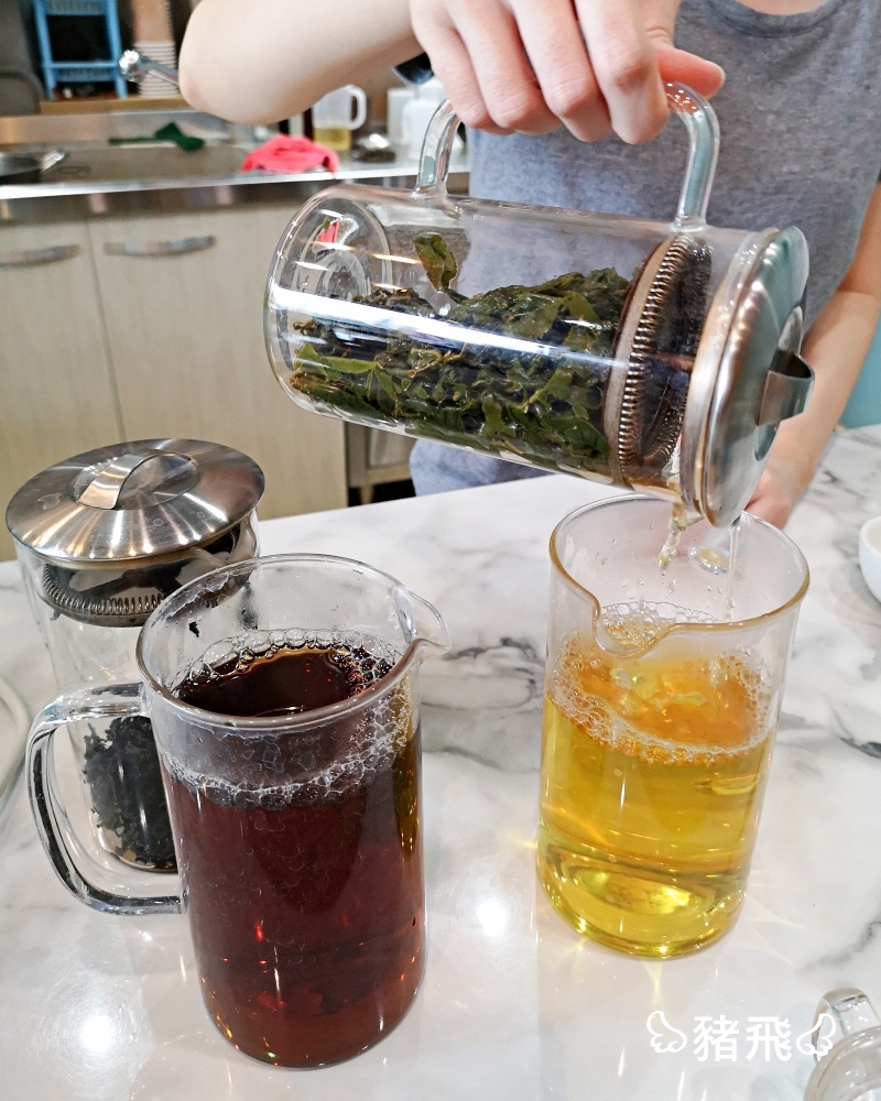 每一款茶葉沖泡的克數不同,沖泡前要用磅秤仔細秤重過,還要搭配對的熱水溫度和每一款茶浸泡的時間,龜毛要求完滿的細節,才能沖泡出最精細順口的茶味。豬飛雖然會泡茶,但每次都是很隨性的抓一把沖泡,看到她們對於自家栽種的茶葉這麼嚴謹的自我要求,心裡充滿了崇拜感(笑)。